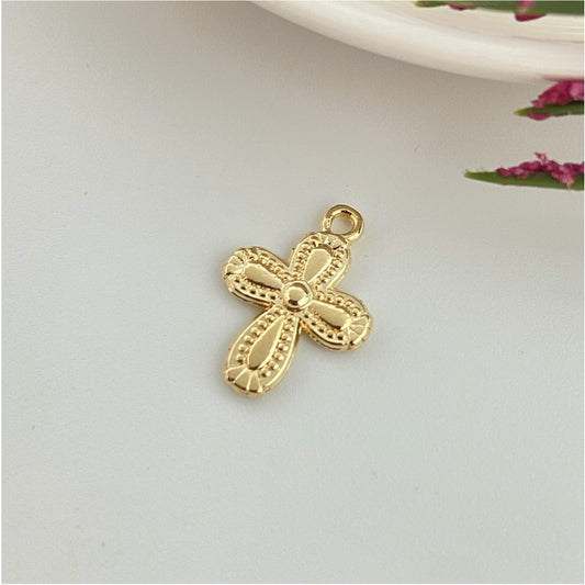 FO972 Colgante Cruz con relieve borde rutilado 15x12 mm más argollita Figura Baño Oro