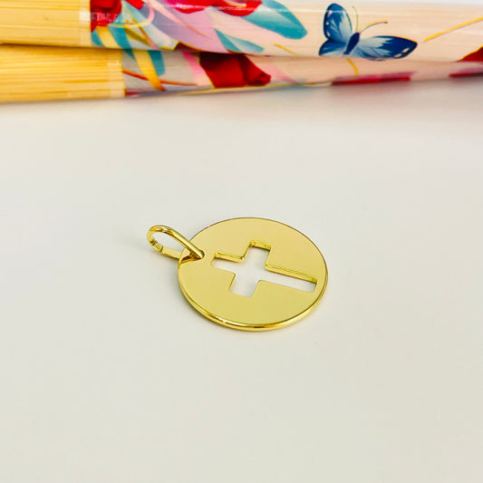 FO1089 Colgante Medalla Cruz Calada diá. 17 mm más valier Espesor 1 mm Figura Baño Oro