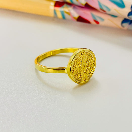 WO67 Anillo San Benito Esfera diá. 11 mm espesor 2 mm Ancho argolla 1.8 mm Anillo Baño Oro