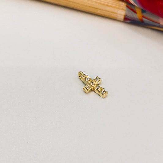FO1069 Colgante Mini Cruz Circones 7 x 5 mm mas argollita Espesor 1.8 mm Figura Baño Oro