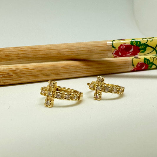 XO322 Aro Argolla Circones Cruz 12 x 7 mm Espesor 2 mm Aro Baño Oro