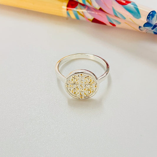WP72 Anillo Tipo Chevalier Large San Benito Esfera diá. 19.5 mm Ancho argolla 3 mm Anillo Baño Plata