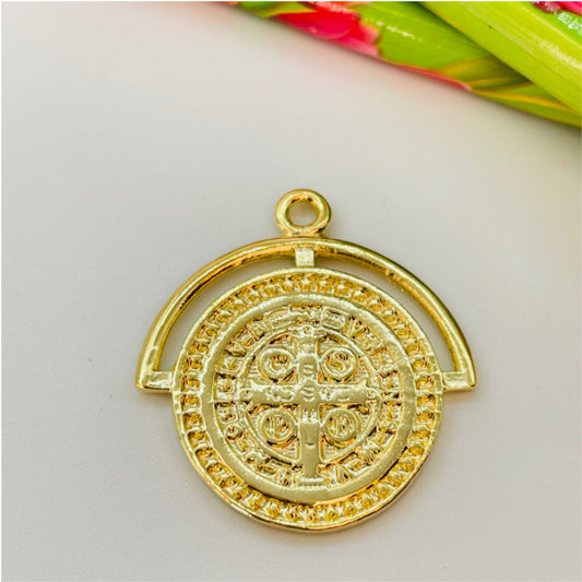 FO856 Colgante Medalla San Benito con borde superior calado 22x25 mm más argollita Figura Baño Oro