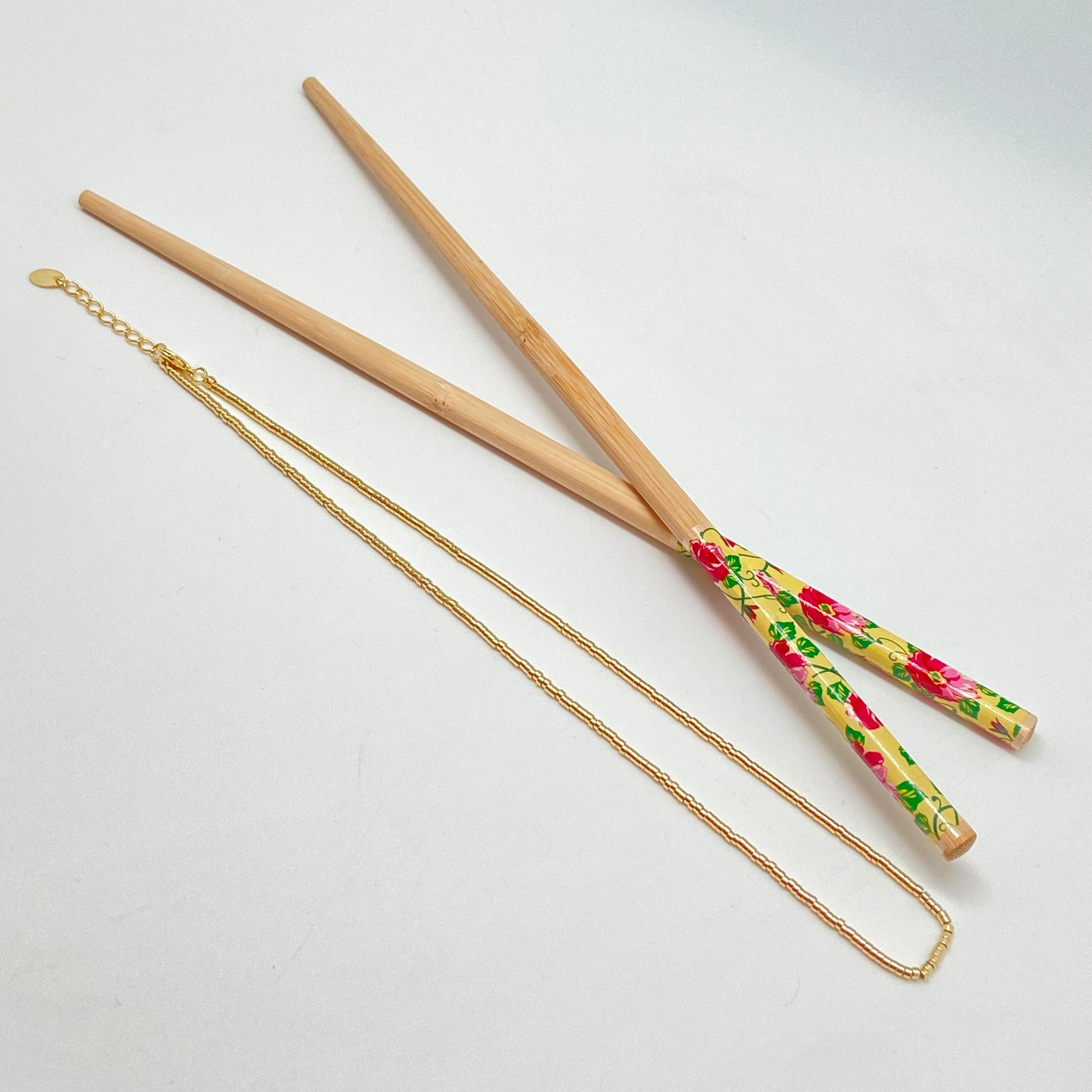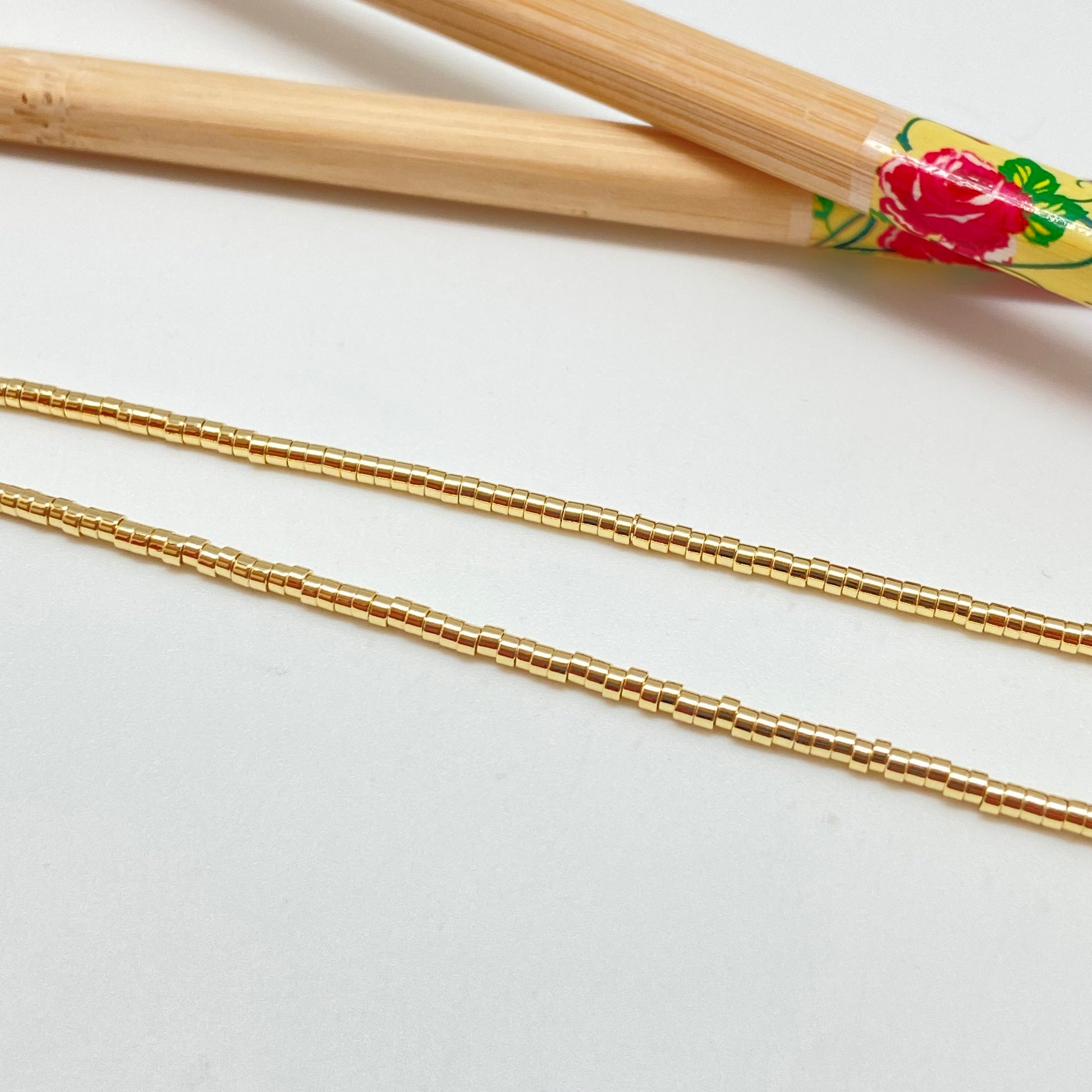 CO07 Collar de Mostacillas Largo 40 cm Cadena Terminada Baño Oro