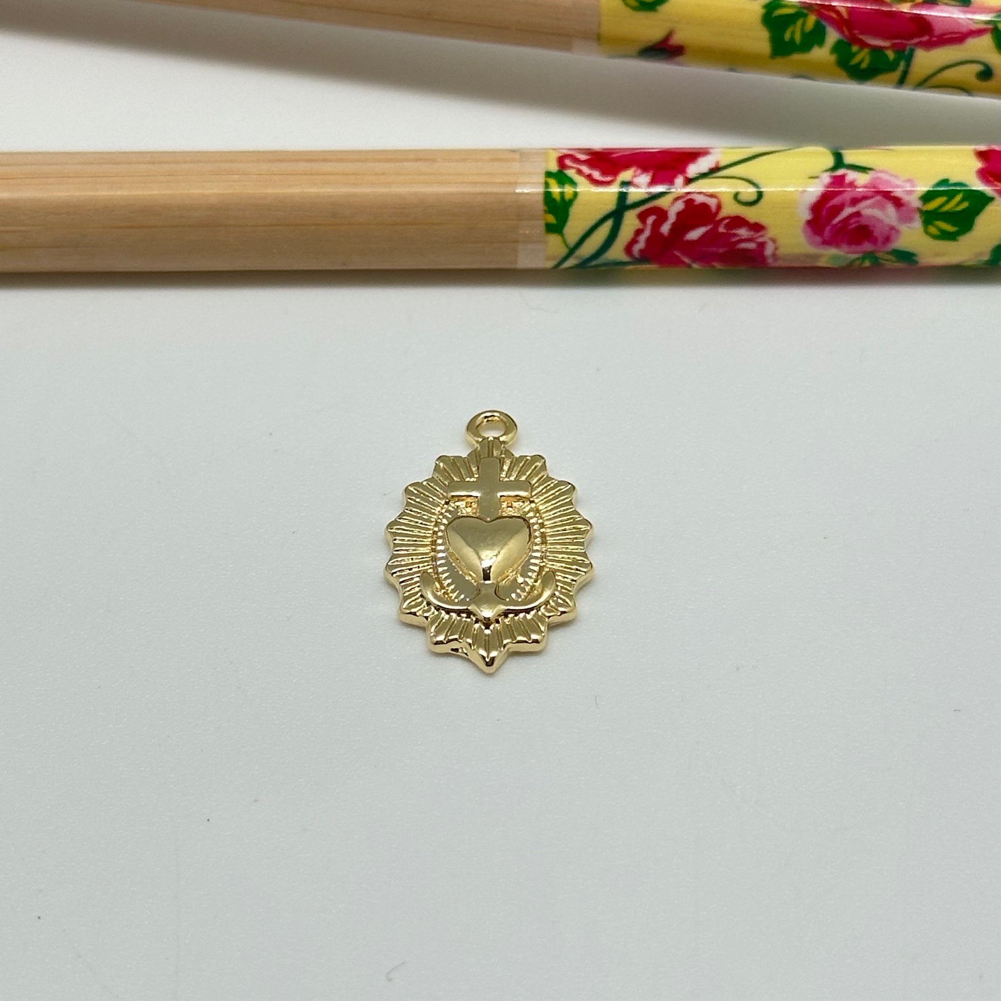 FO1028 Colgante Detente con cruz en relieve borde irregular 17 x 12 mm mas argollita Figura Baño Oro