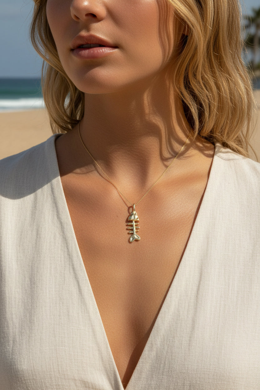 FO1276 Colgante Espina de Pez Martelado 20 x 9 mm más valier fijo Espesor 3.8 mm Figura Baño Oro