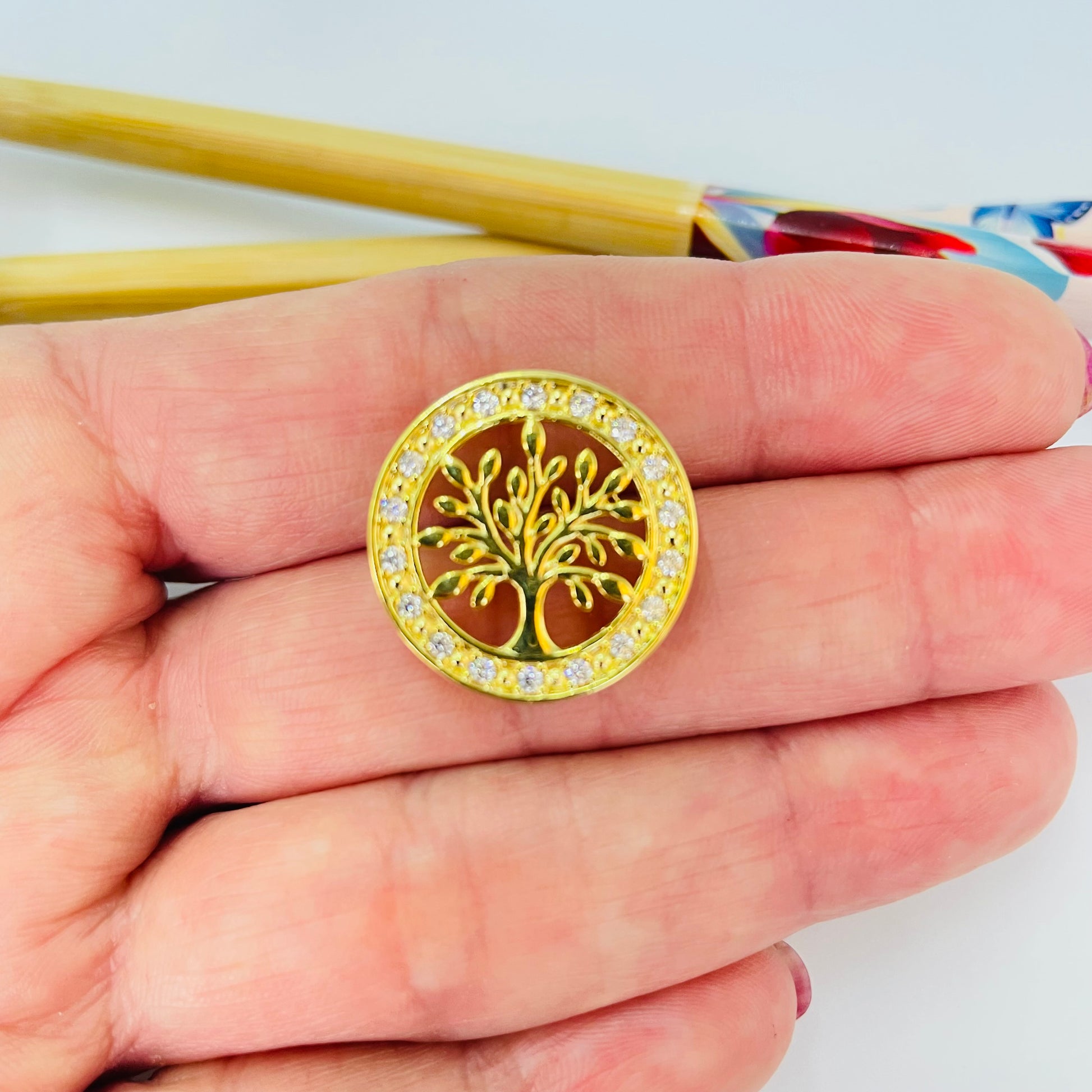 FO1281 Colgante Arbol de la Vida para pasar con galería diá. 20 mm Espesor 4 mm Figura Baño Oro