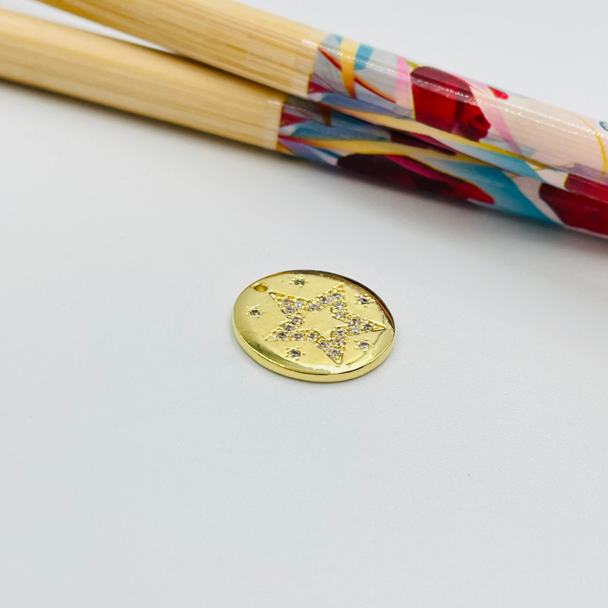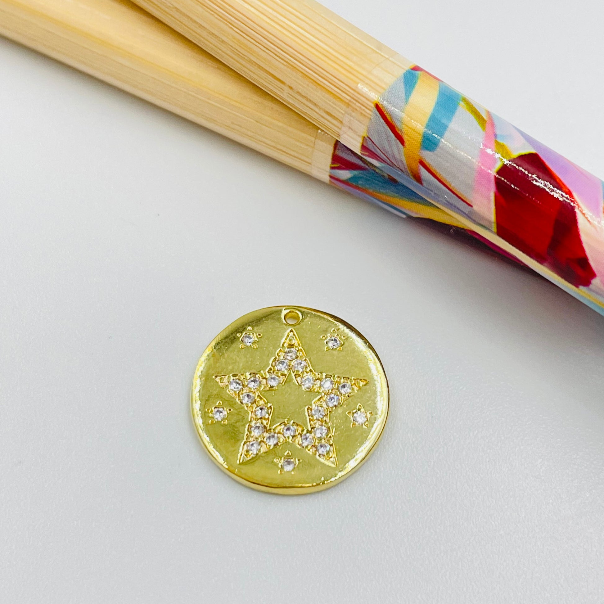 FO904 Colgante Redondo Estrella con circones y 5 mini estrellas en el contorno con circón 15 mm Figura Baño Oro