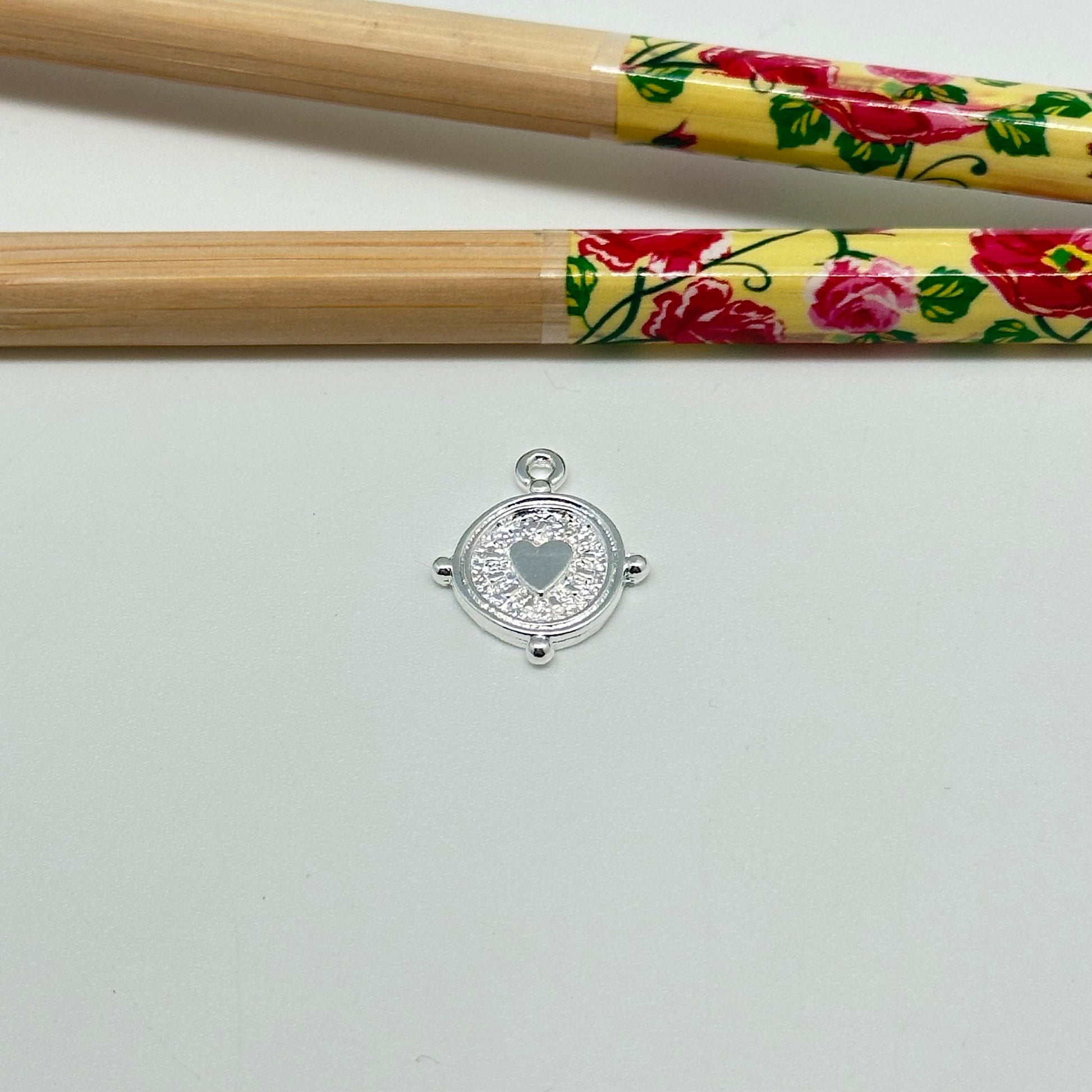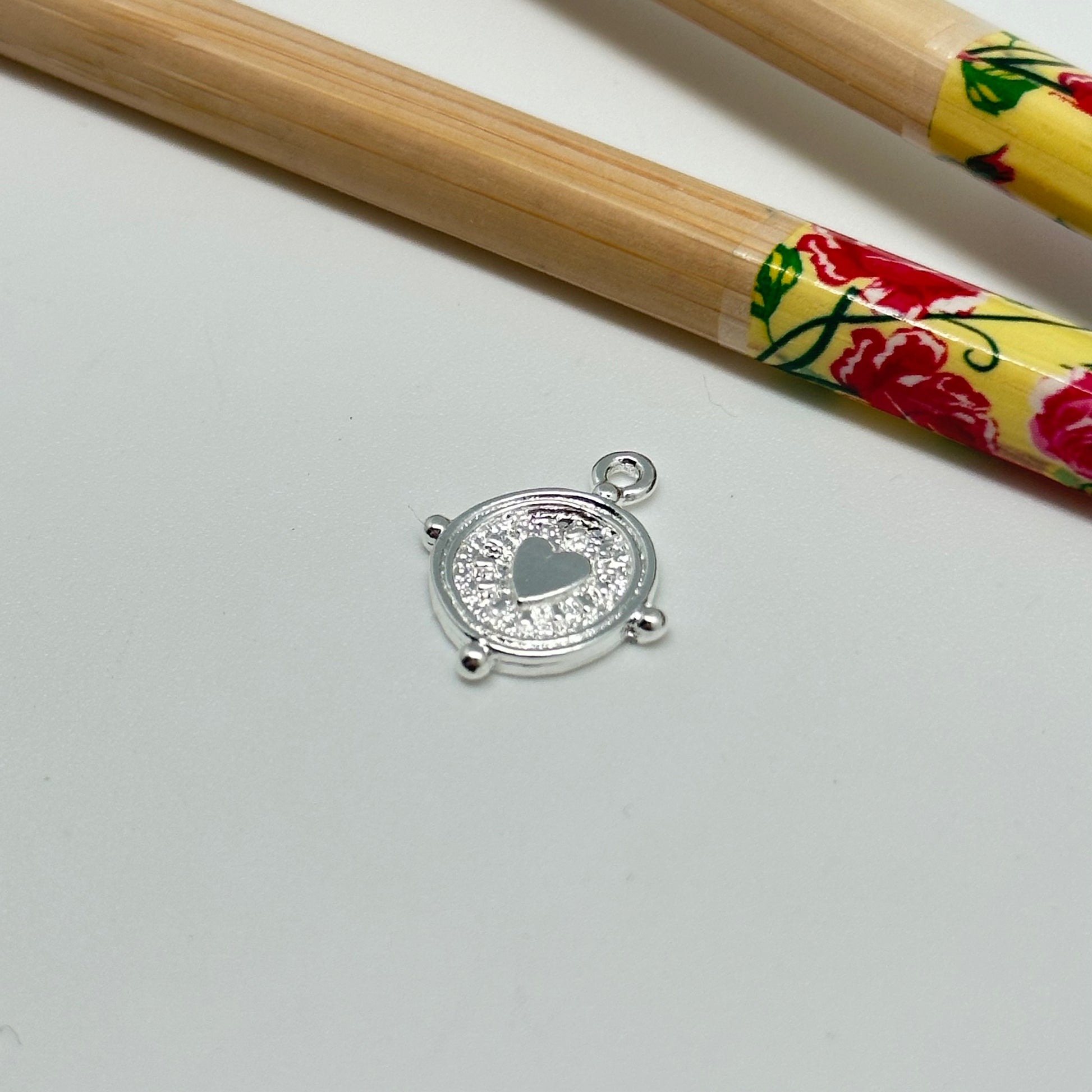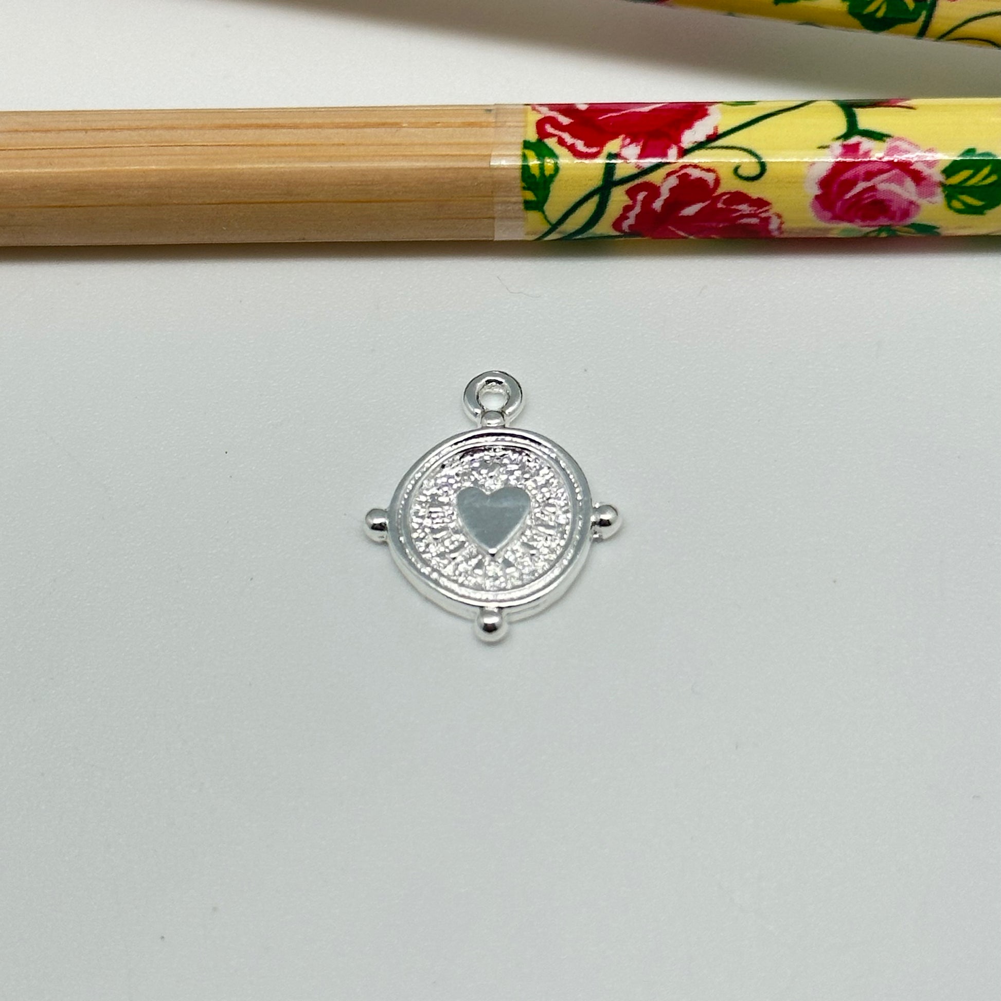 FP1029 Colgante medalla corazon y rayitos en relieve 4 bolitas en borde 11 mm mas argollita Figura Baño Plata