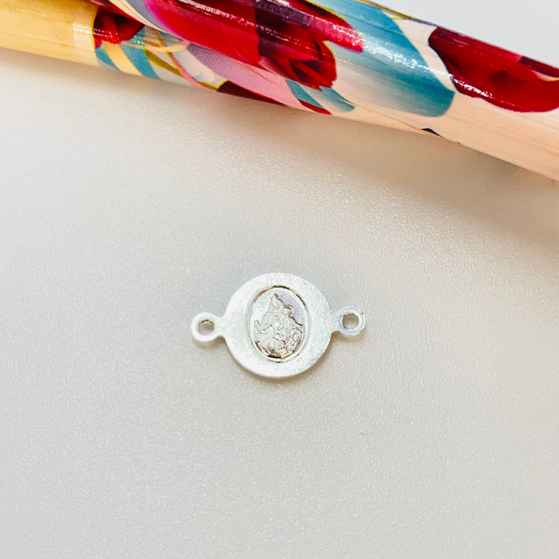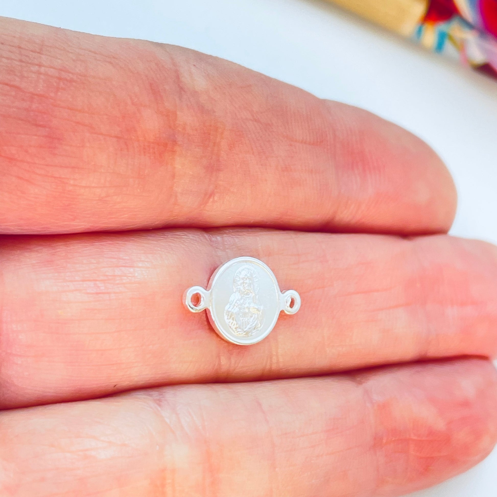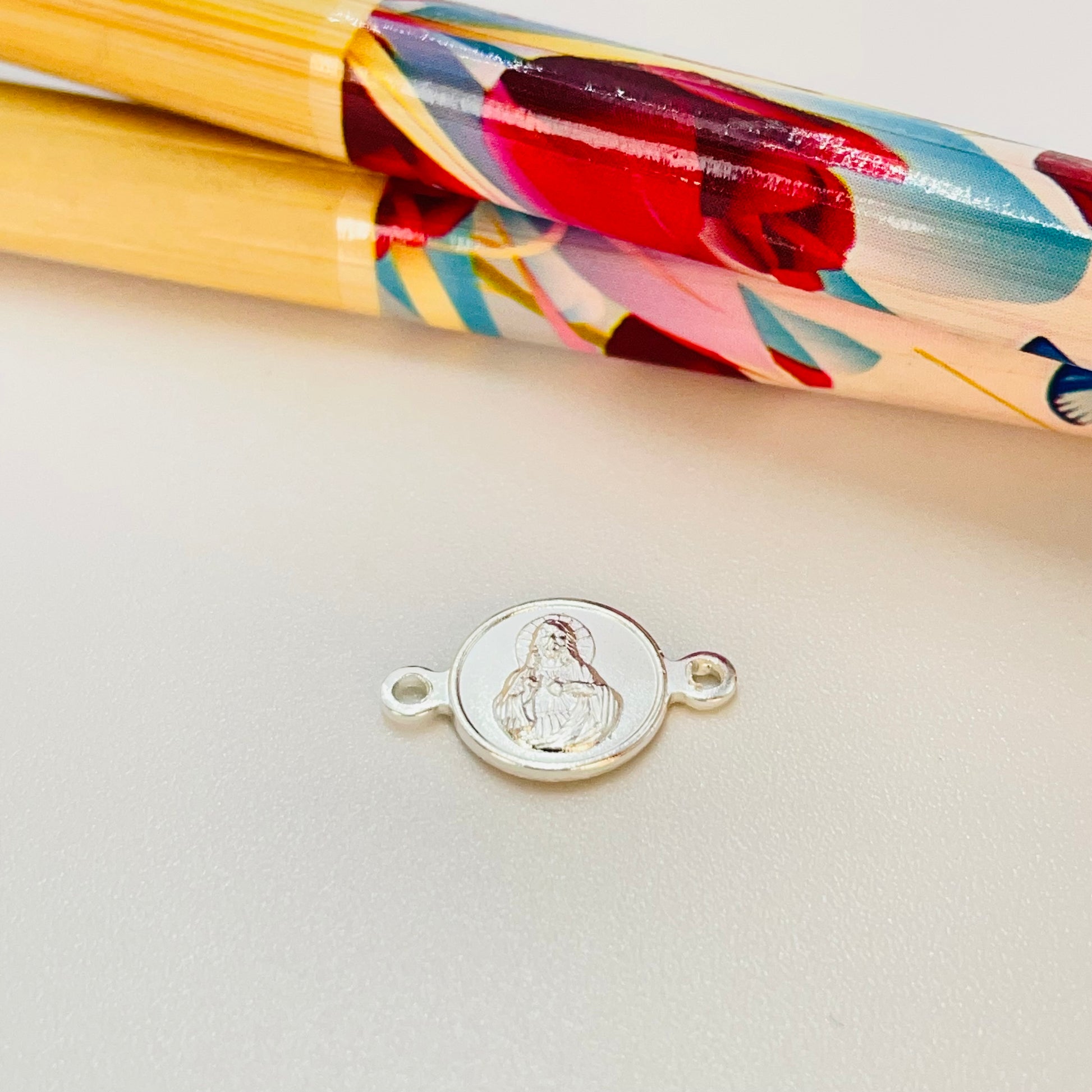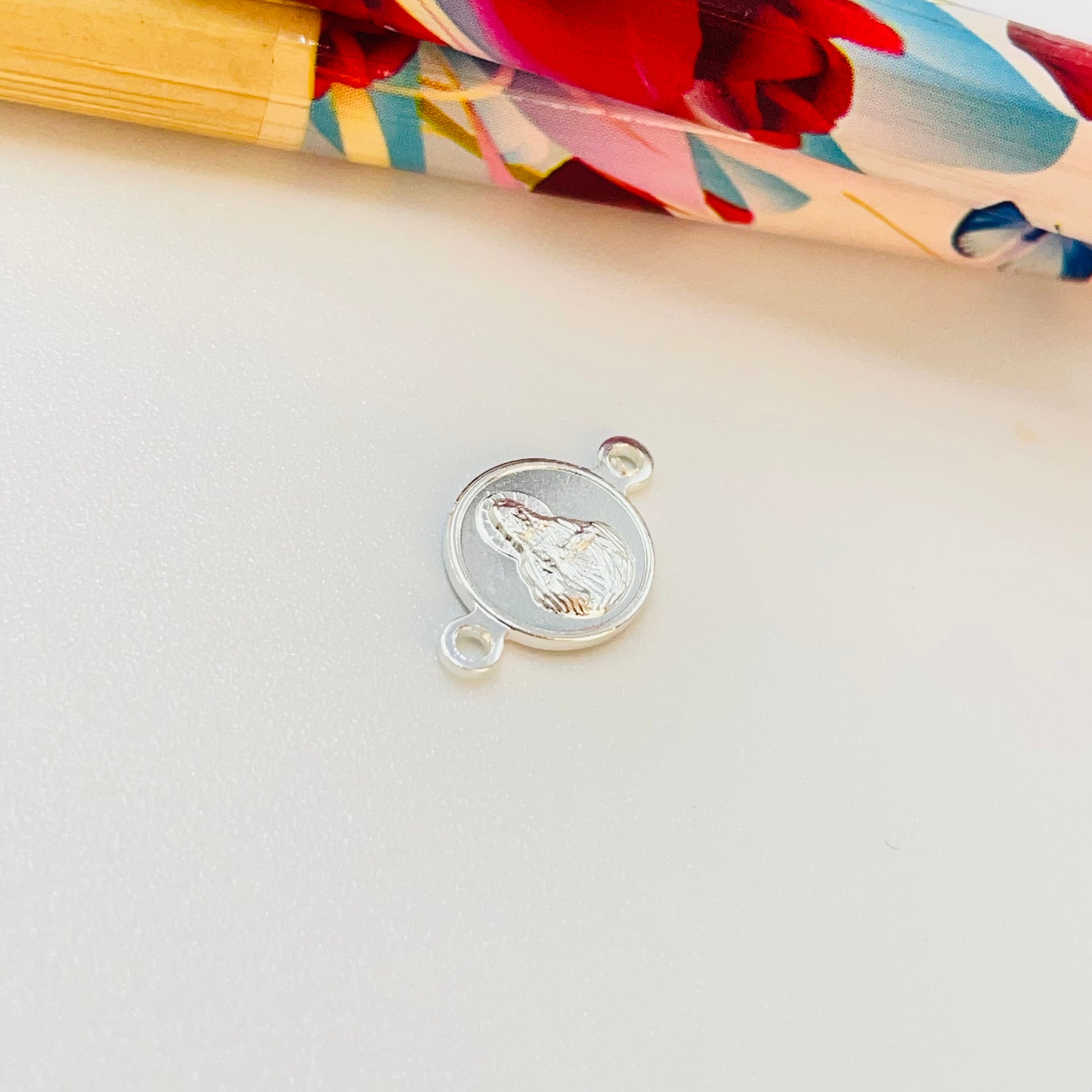 FP1200 Conector Sagrado Corazón y Virgen del Carmen Doble Faz Diá. 9 mm mas argollitas Espesor 1 mm Figura Baño Plata