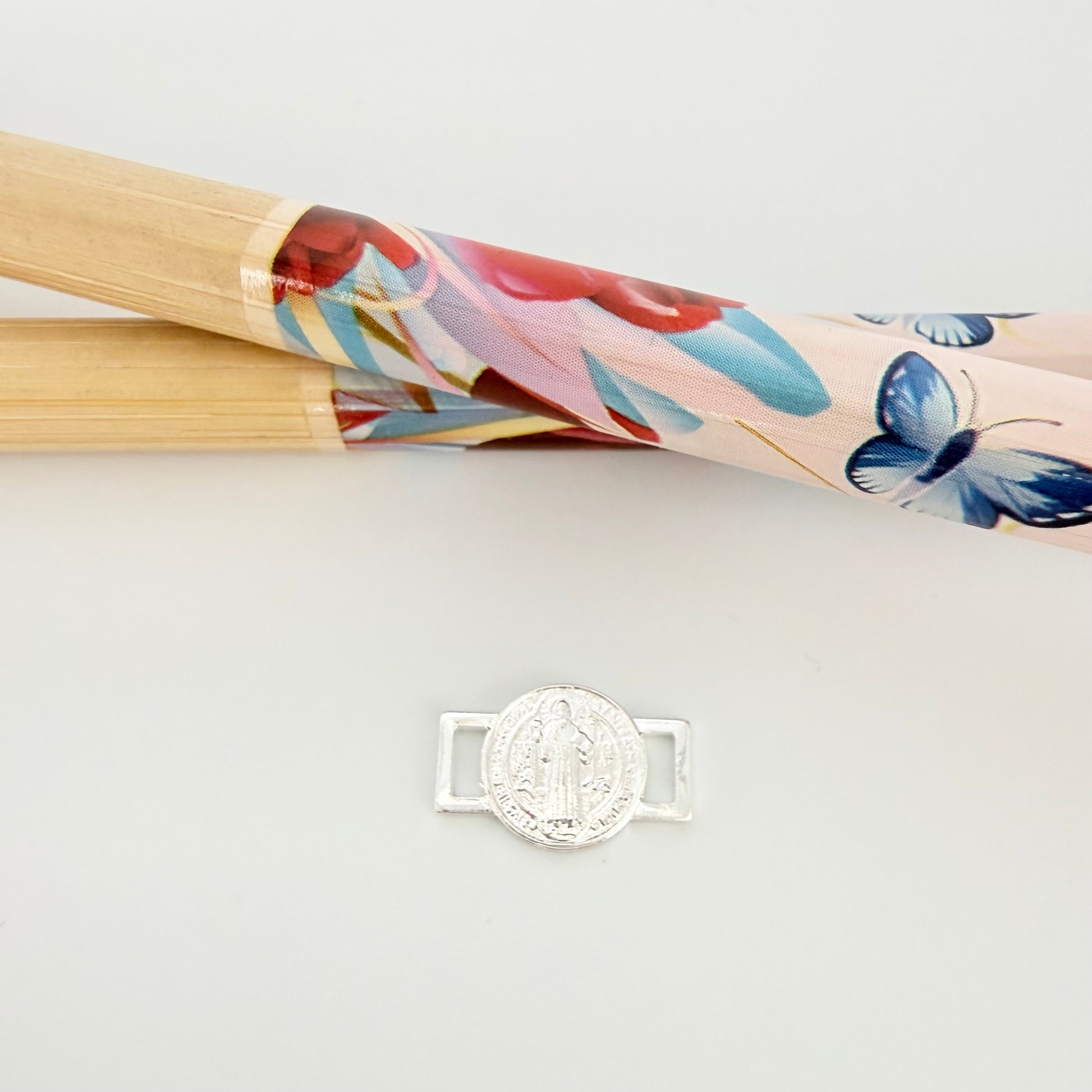 FP1252 Eslabón para pulsera San Benito doble faz diá. 9 mm más corchetes 5 x 2.5 mm Figura Baño Plata