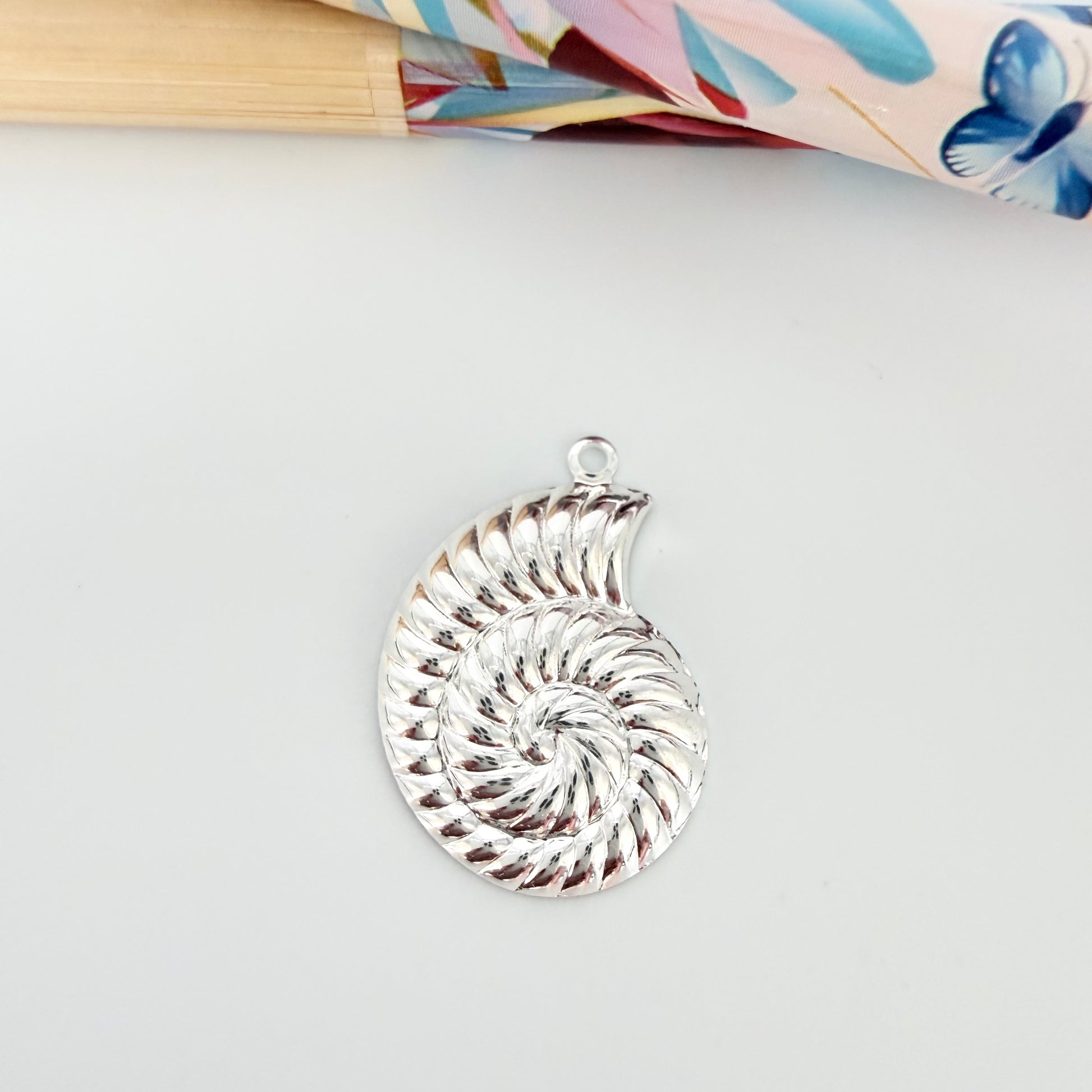 FP1258 Colgante Caracola Lado Derecho 20 x 16 mm más argollita Espesor 0.8 mm Figura Baño Plata