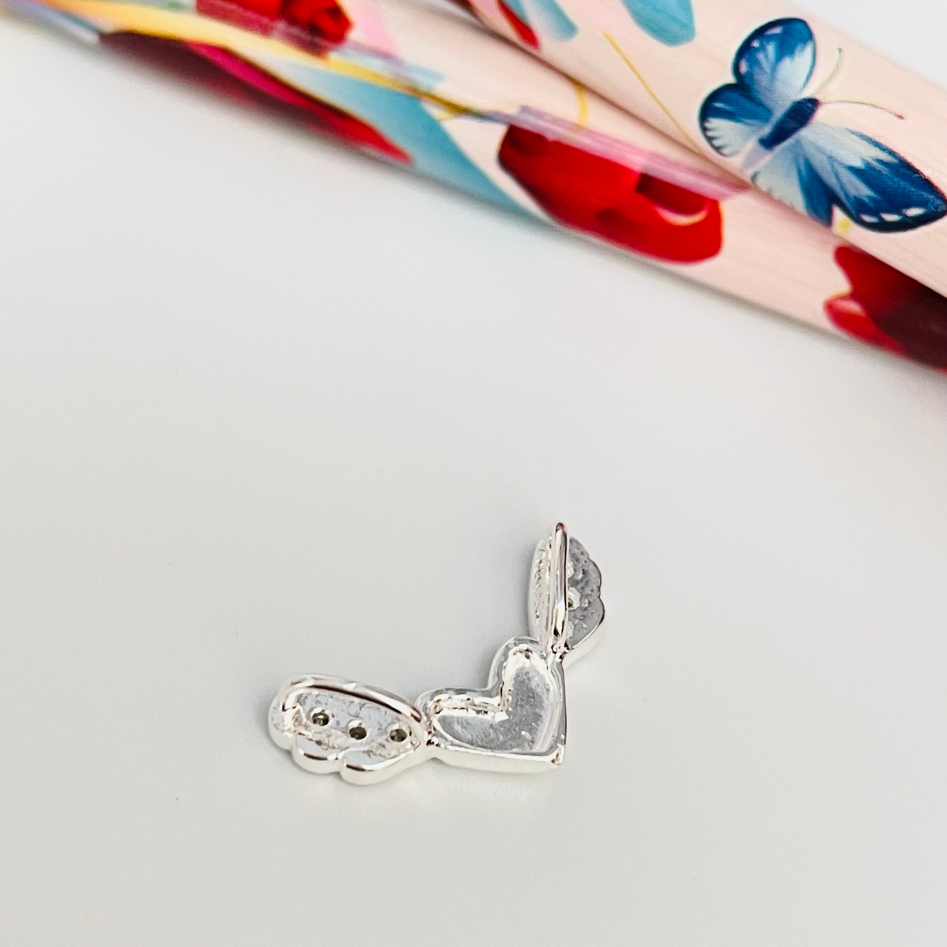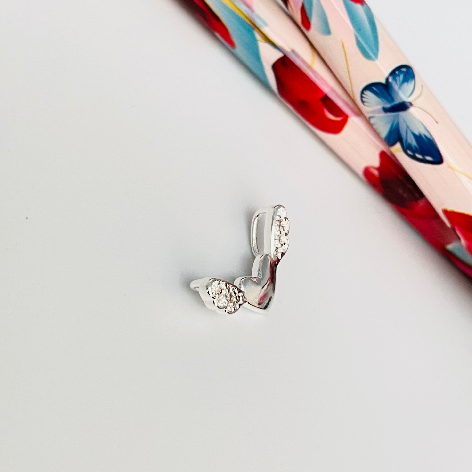 FP911 Colgante Corazón con alitas con circones argollitas por atrás para pasar 10x16 mm Figura Baño Plata