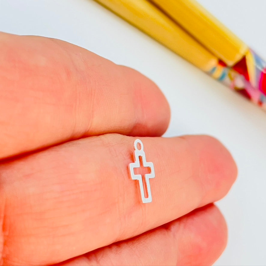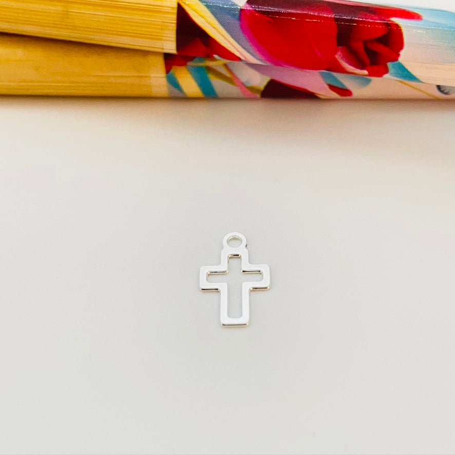 FP955 Colgante Mini Cruz Calada 9x7 mm más argollita Figura Baño Plata