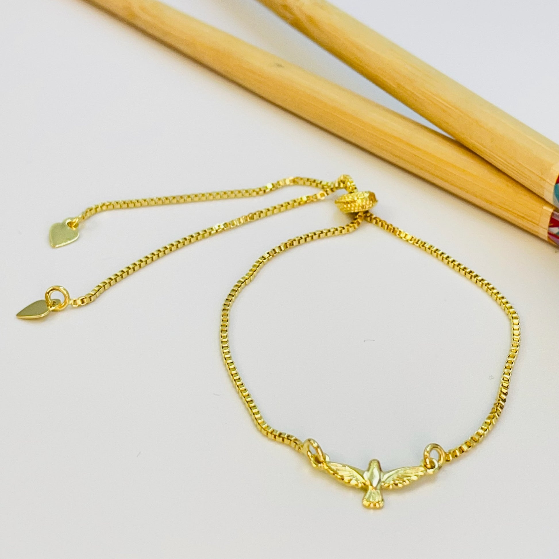PO27 Pulsera Regulable Espíritu Santo 8 x 15 mm Espesor 1 mm Cadena Veneciana Espesor 1 mm Largo 23 mm Bolita Silicona Terminales Corazón Pulsera Baño Oro
