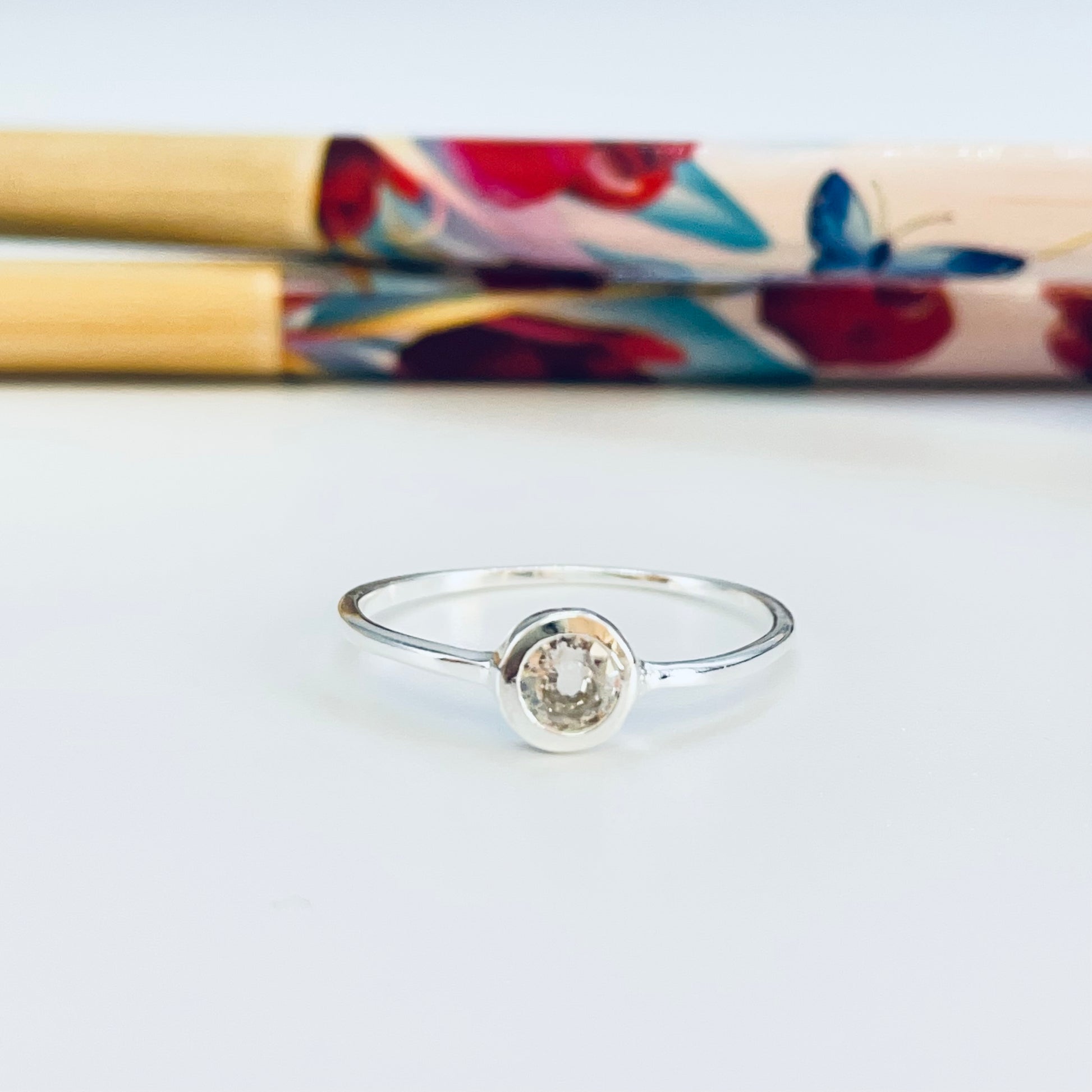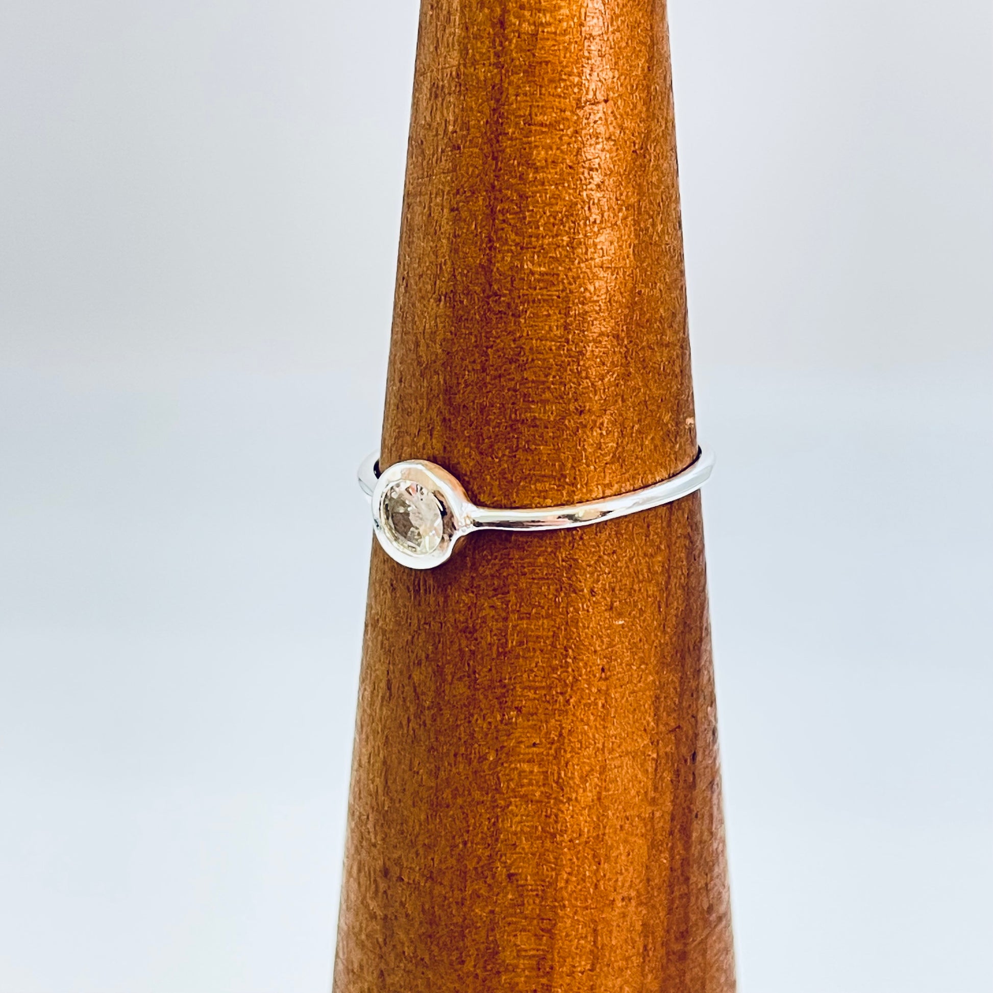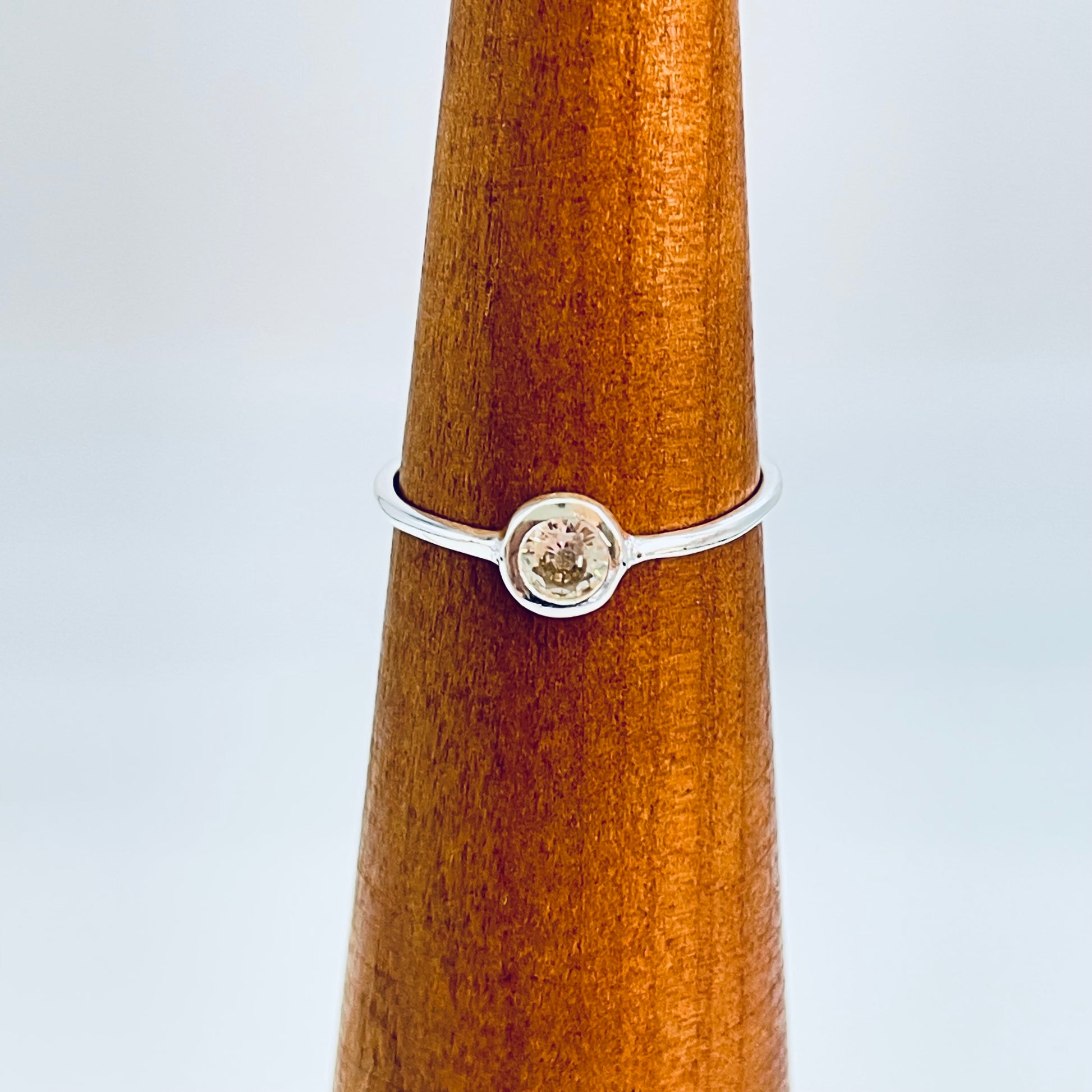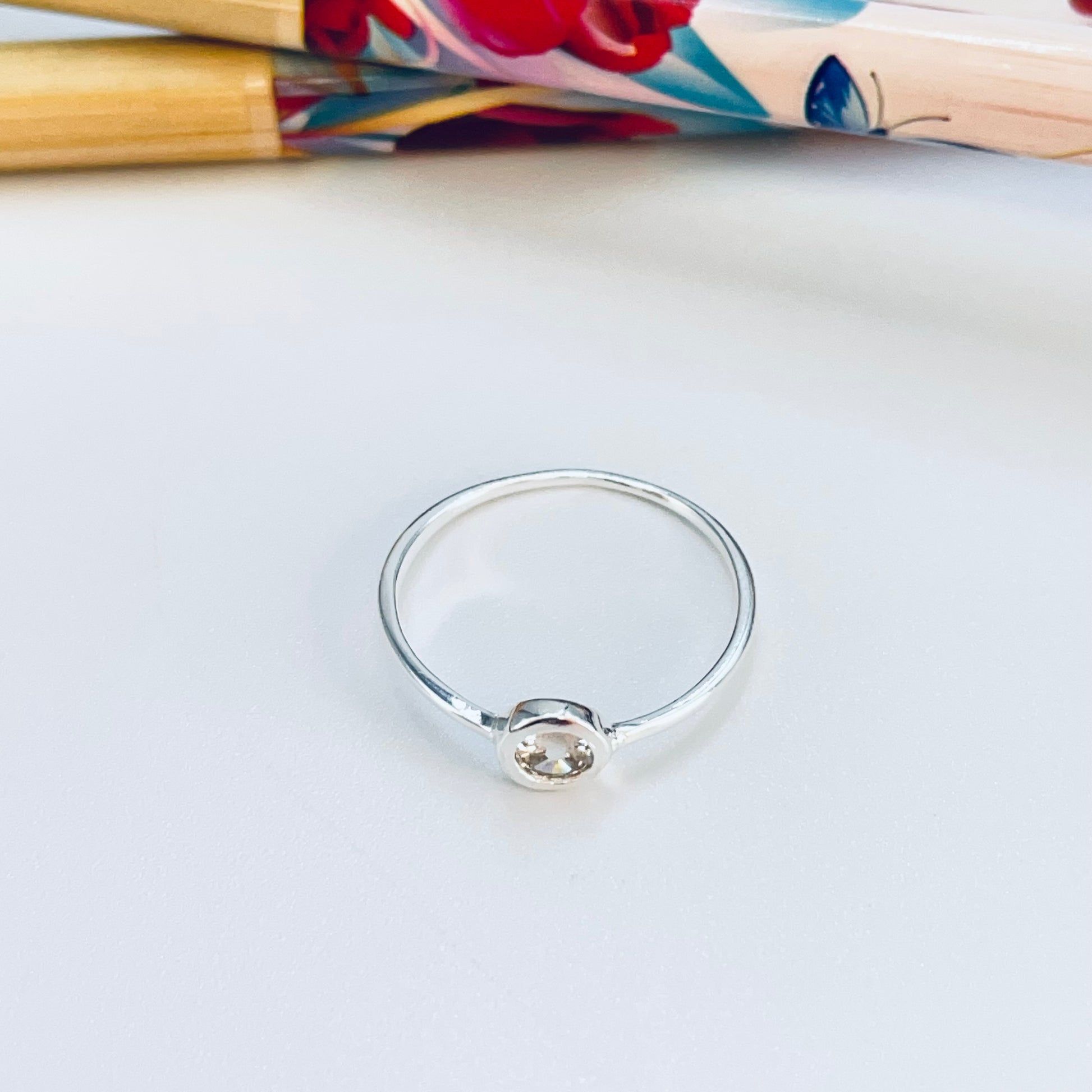WP58 Anillo solitario circon cristal 5 mm argolla 1 mm espesor Anillo Baño Plata