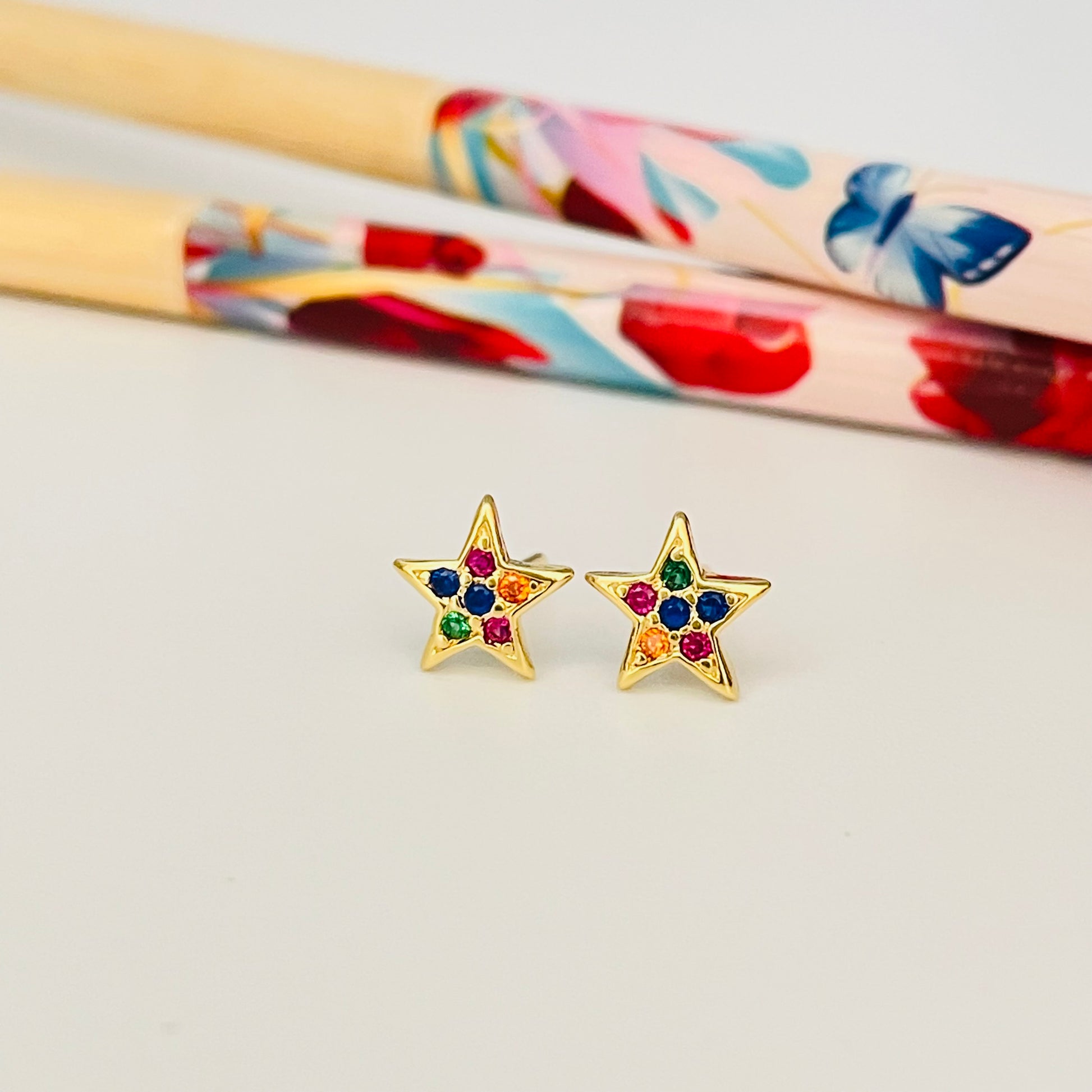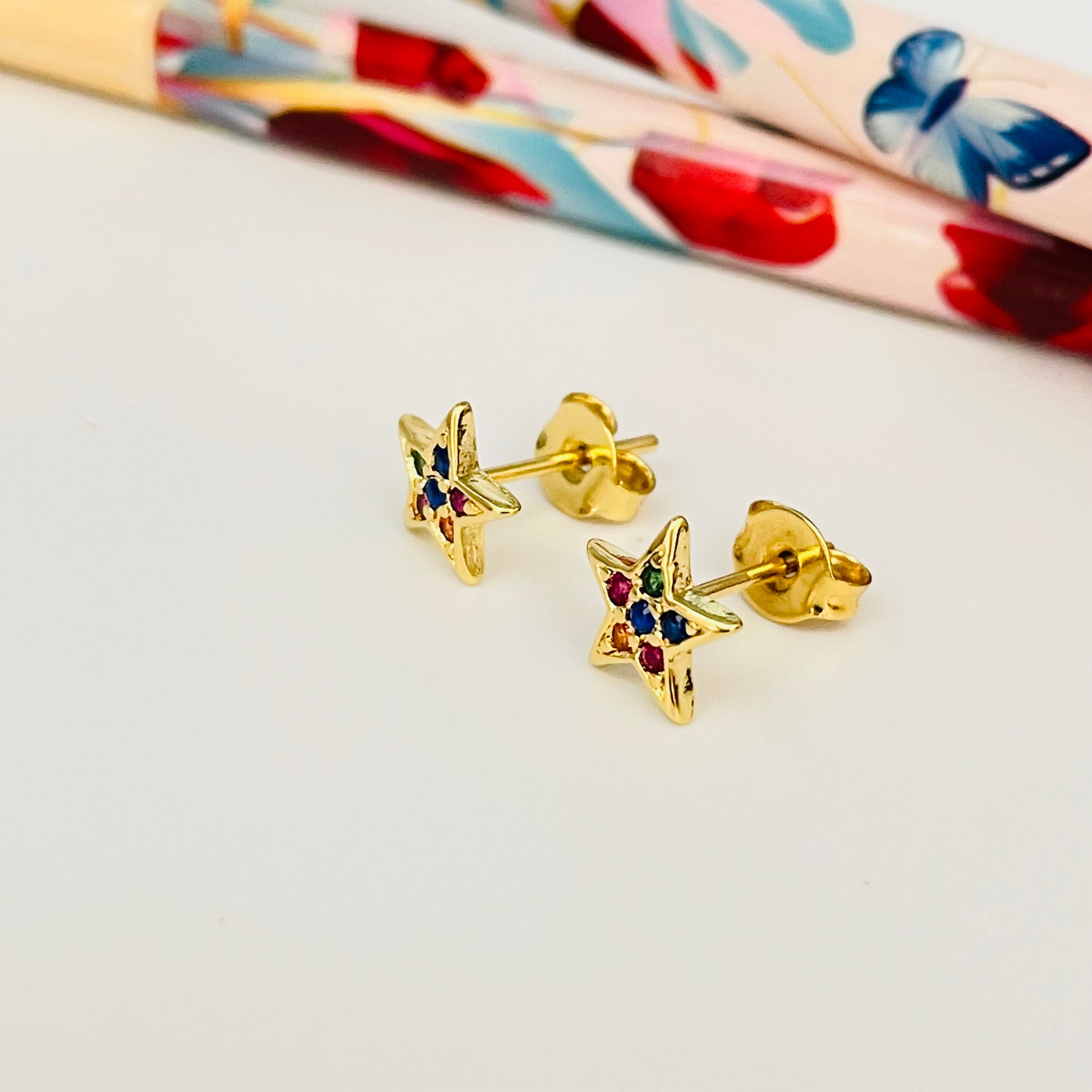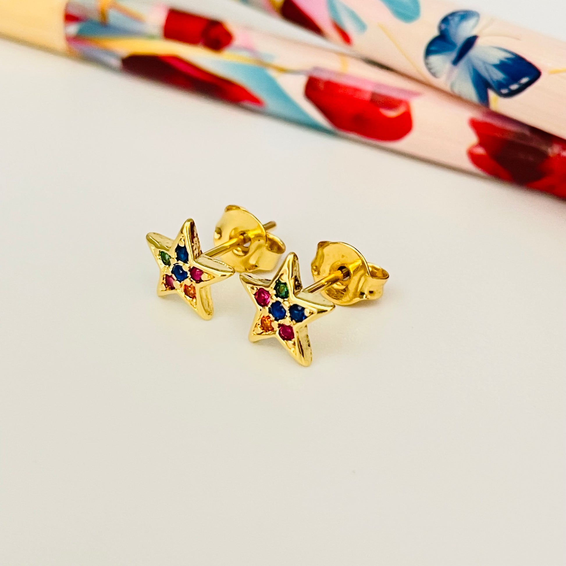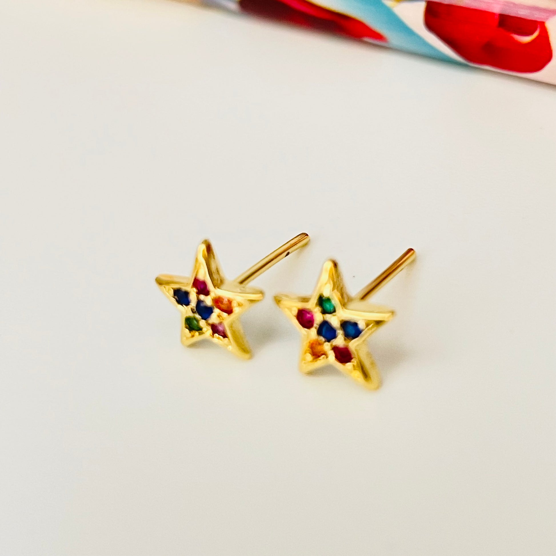 XO216 Aro Estrella con circones multicolor 8 mm Aro Baño Oro