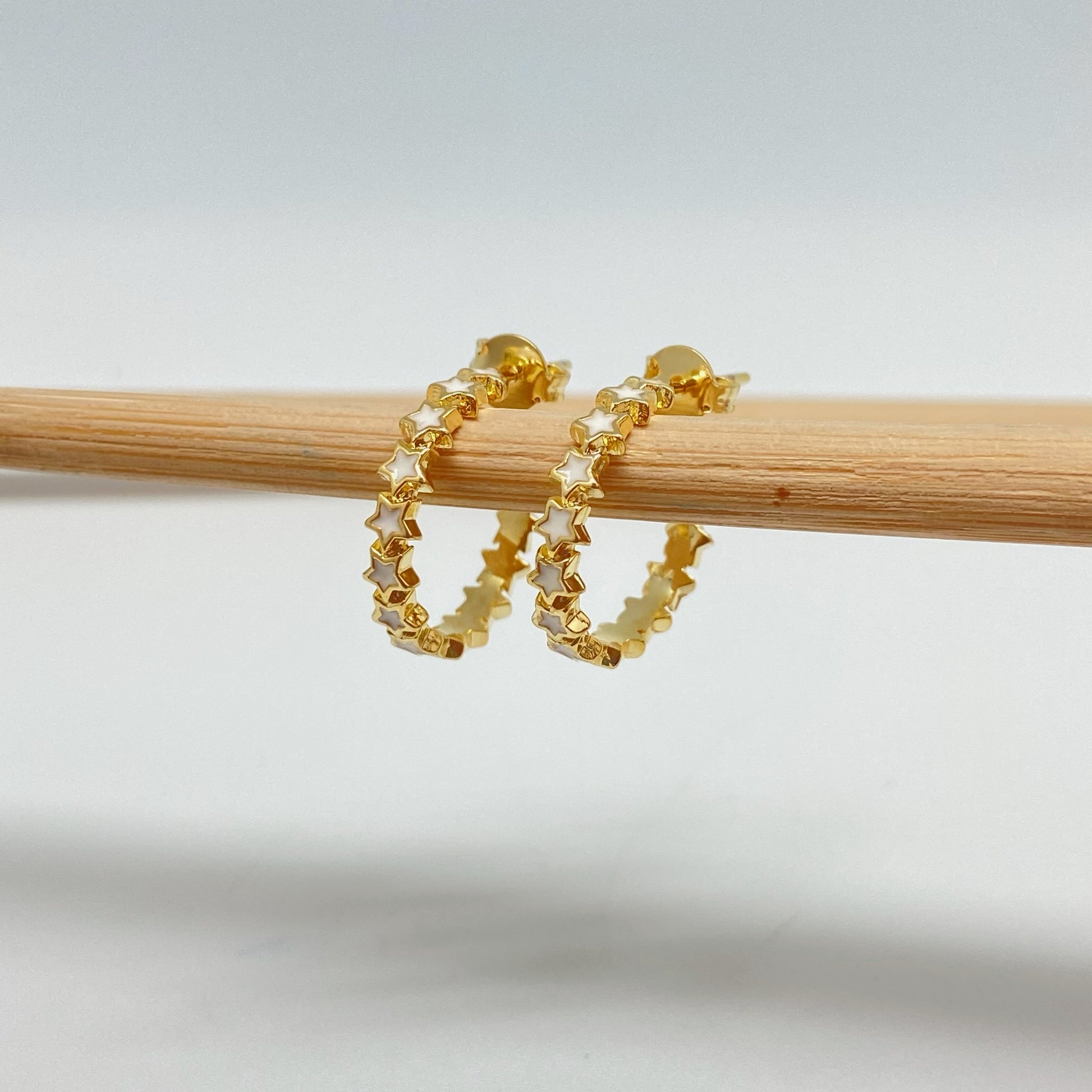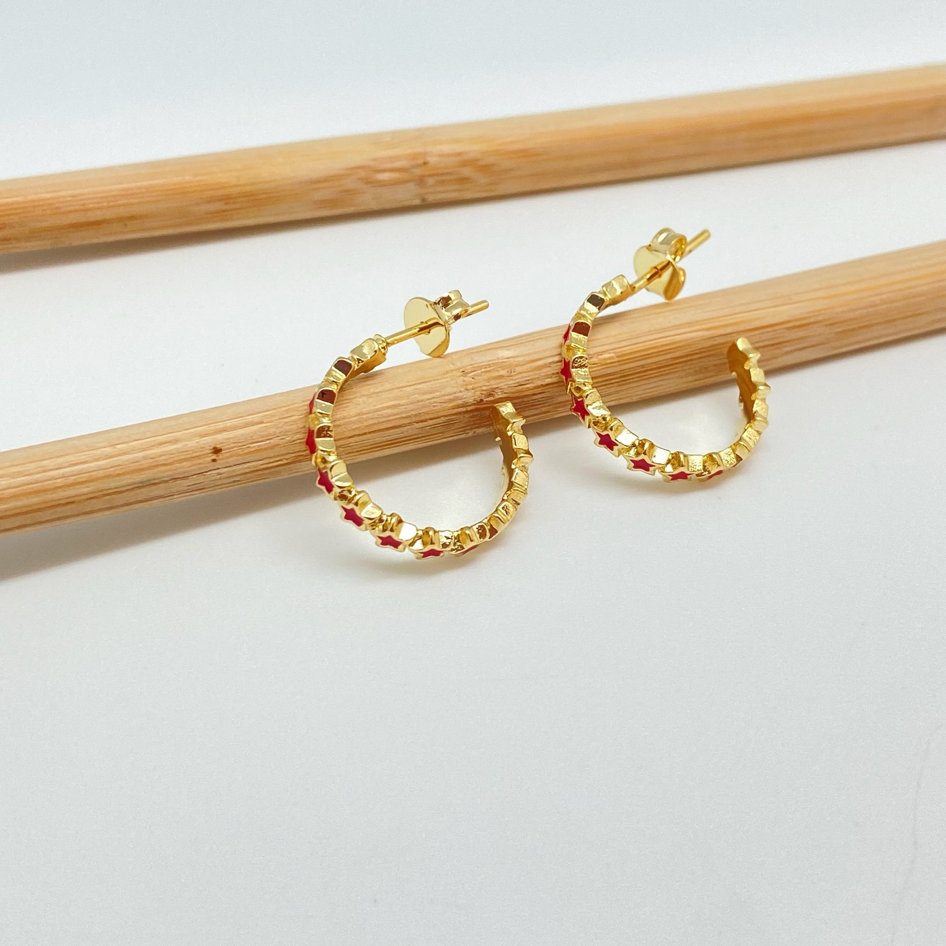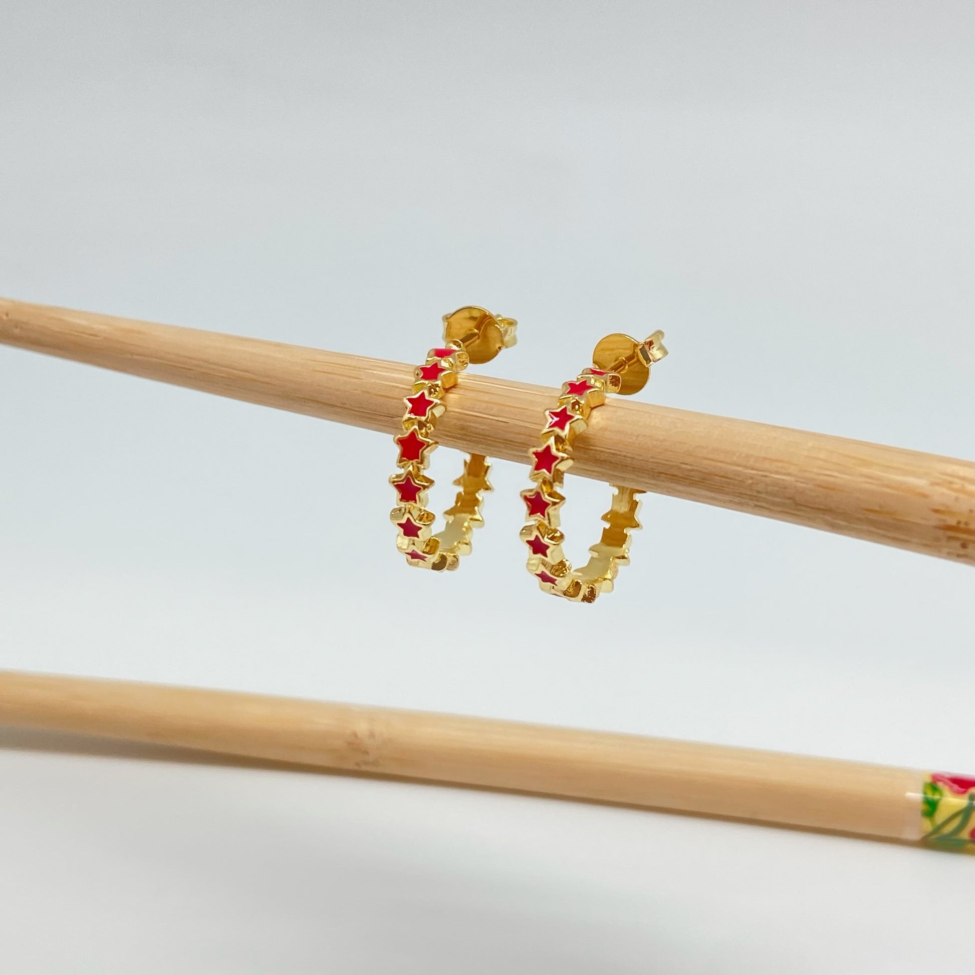 XO302 Aro Argolla Estrellas con resina color Dia. 15 mm ancho 3 mm Aro Baño Oro