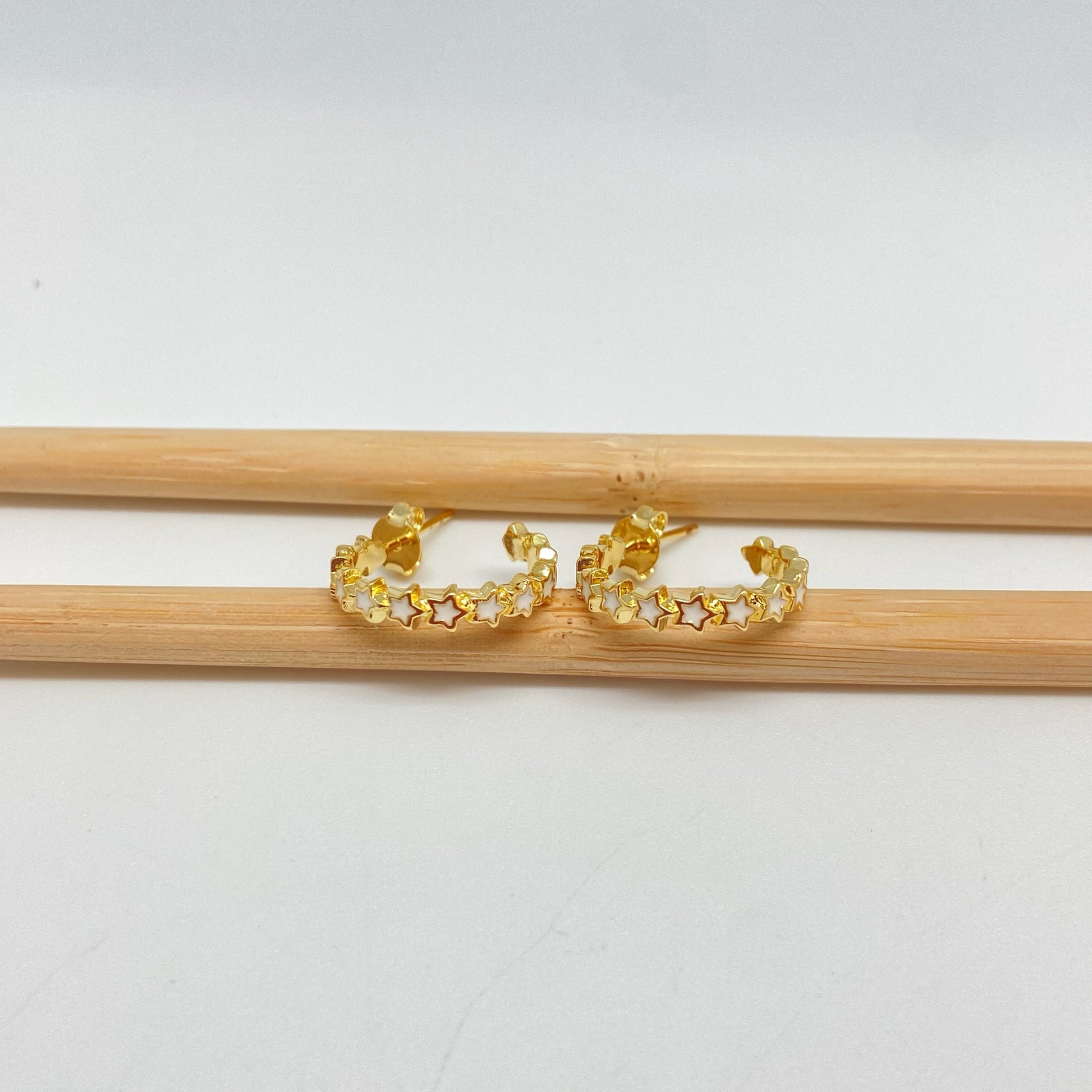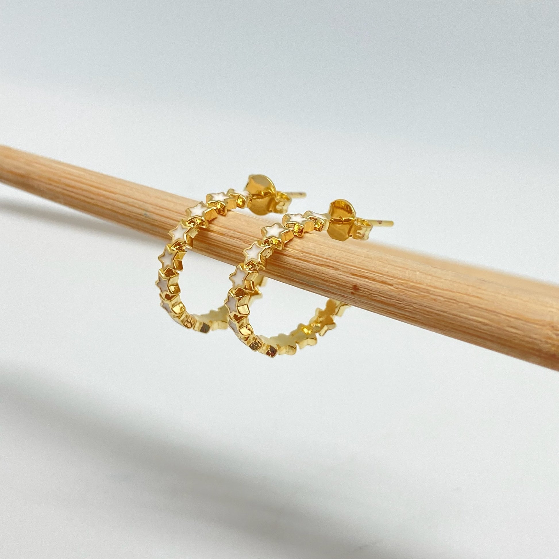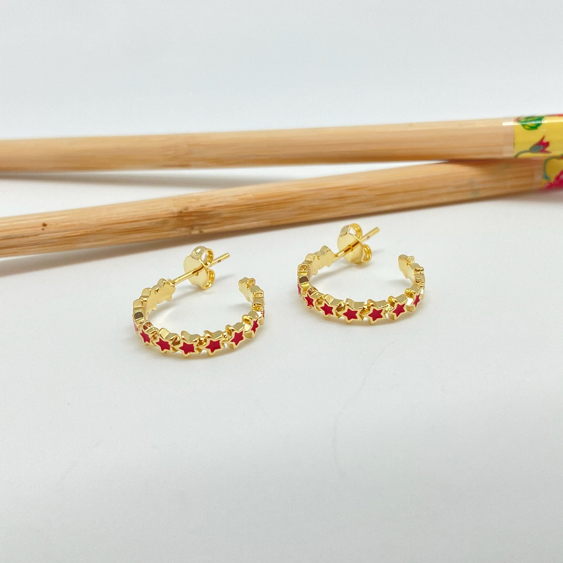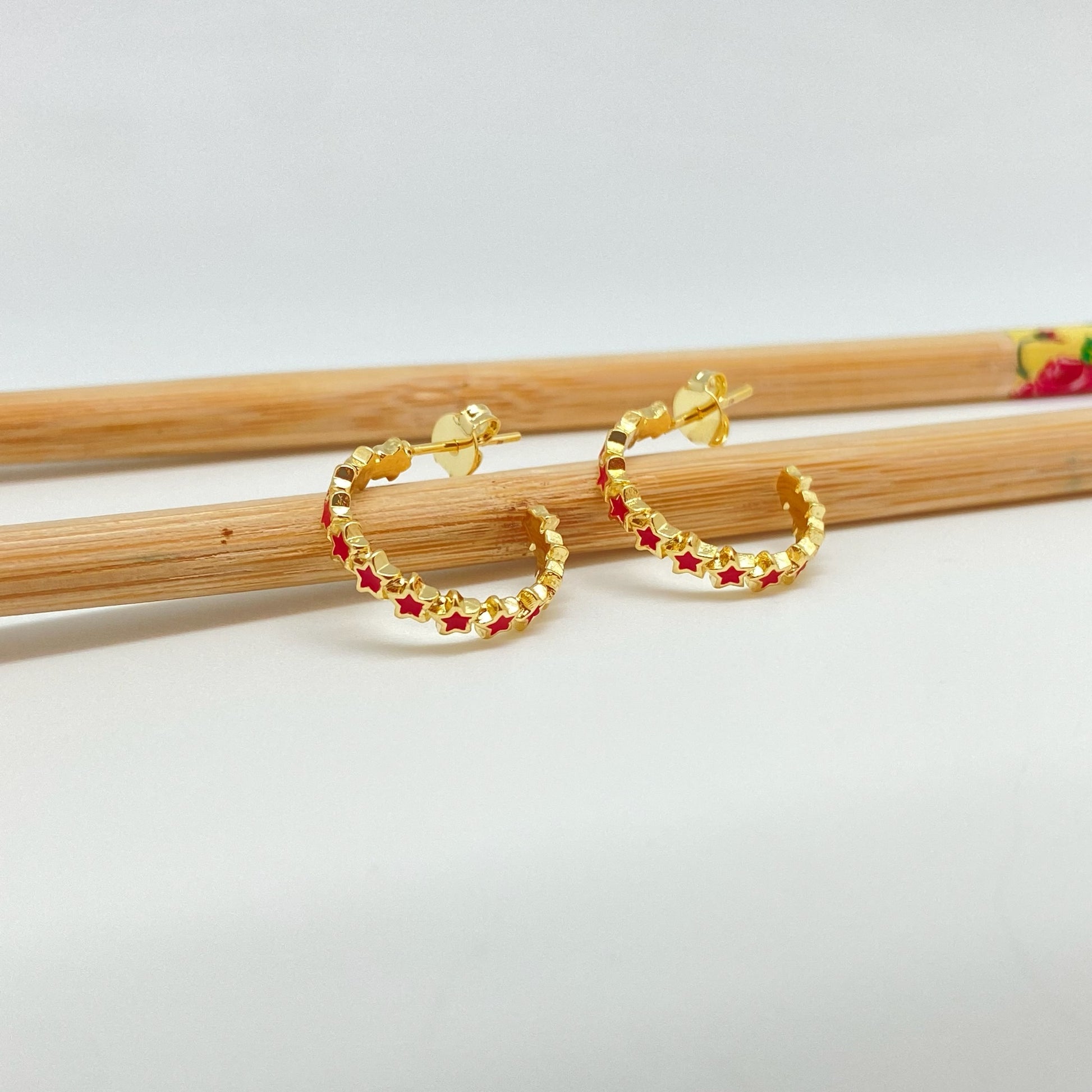 XO302 Aro Argolla Estrellas con resina color Dia. 15 mm ancho 3 mm Aro Baño Oro