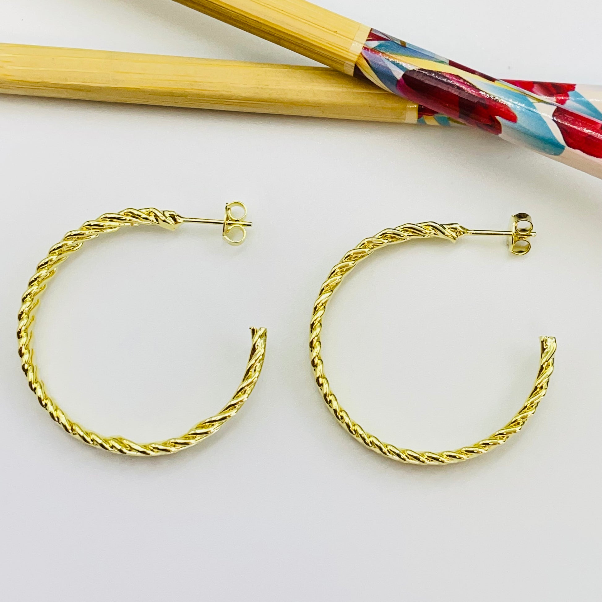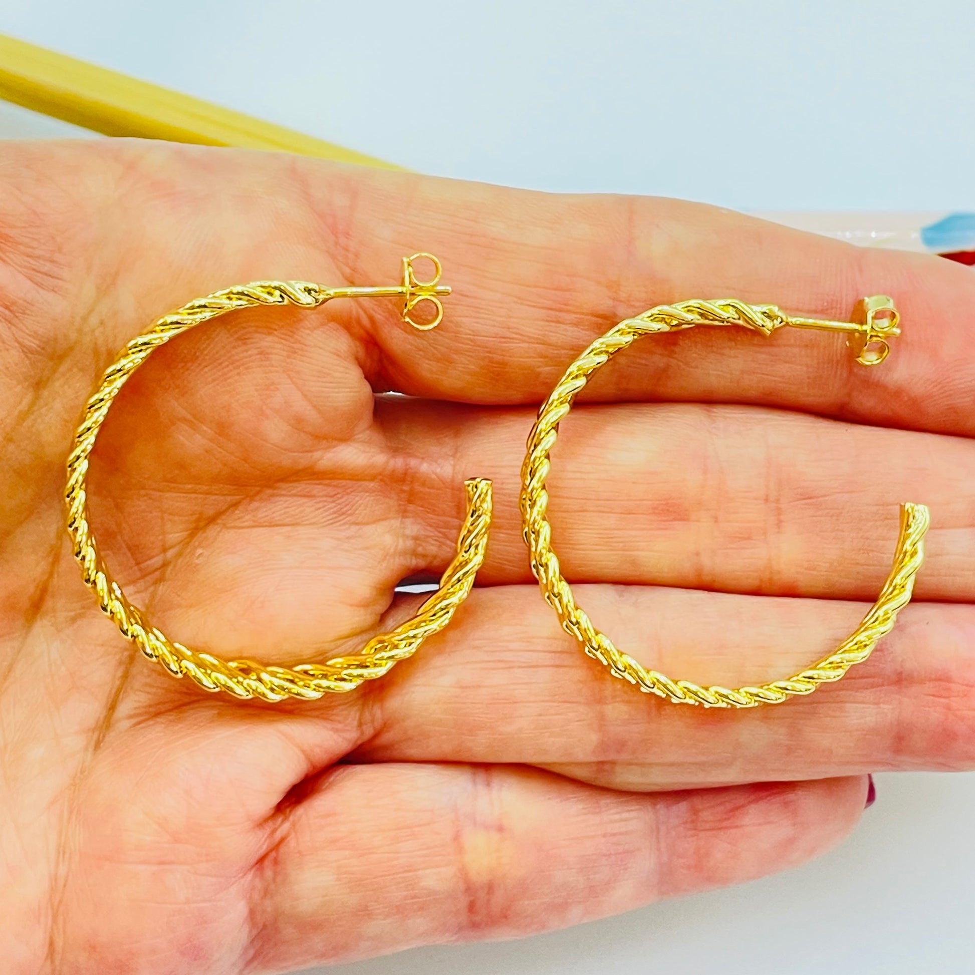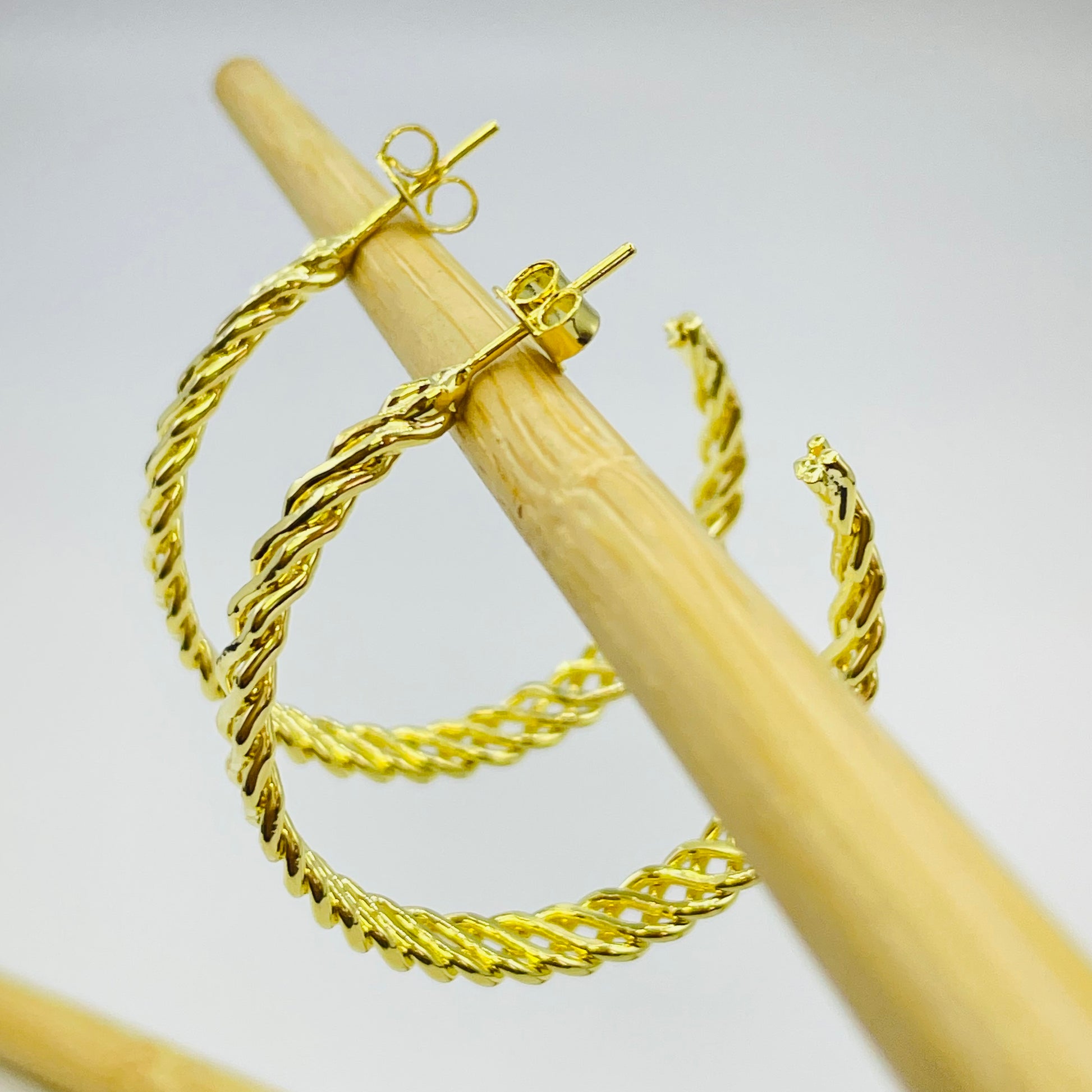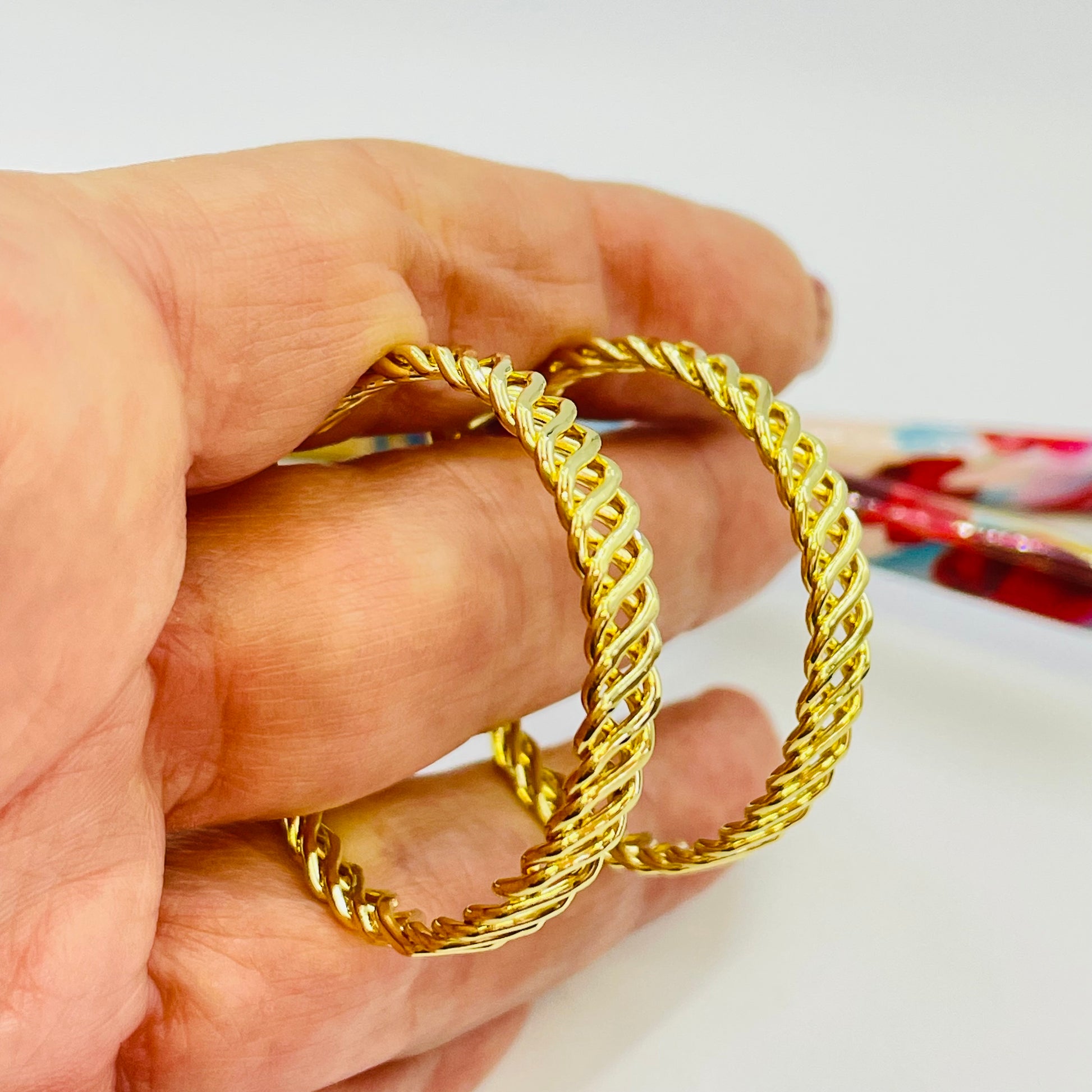 XO552 Argolla Trenza Diá. 35 mm Ancho 5 mm Espesor 2 mm Aro Baño Oro