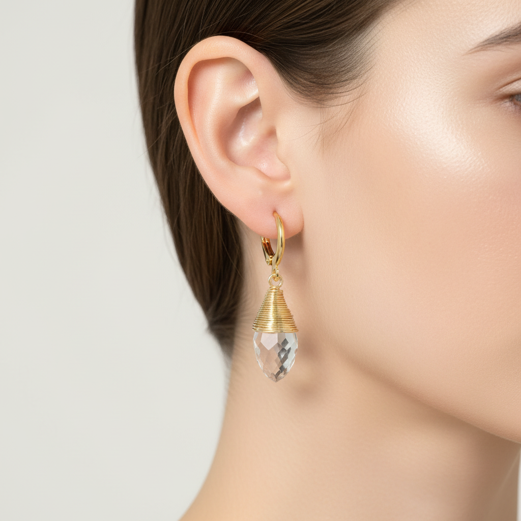 XO563 Aro Argolla Cristal Facetado Embarrilado Largo Total 34 mm Ancho 9 mm Largo Cristal 18 mm Aro Baño Oro