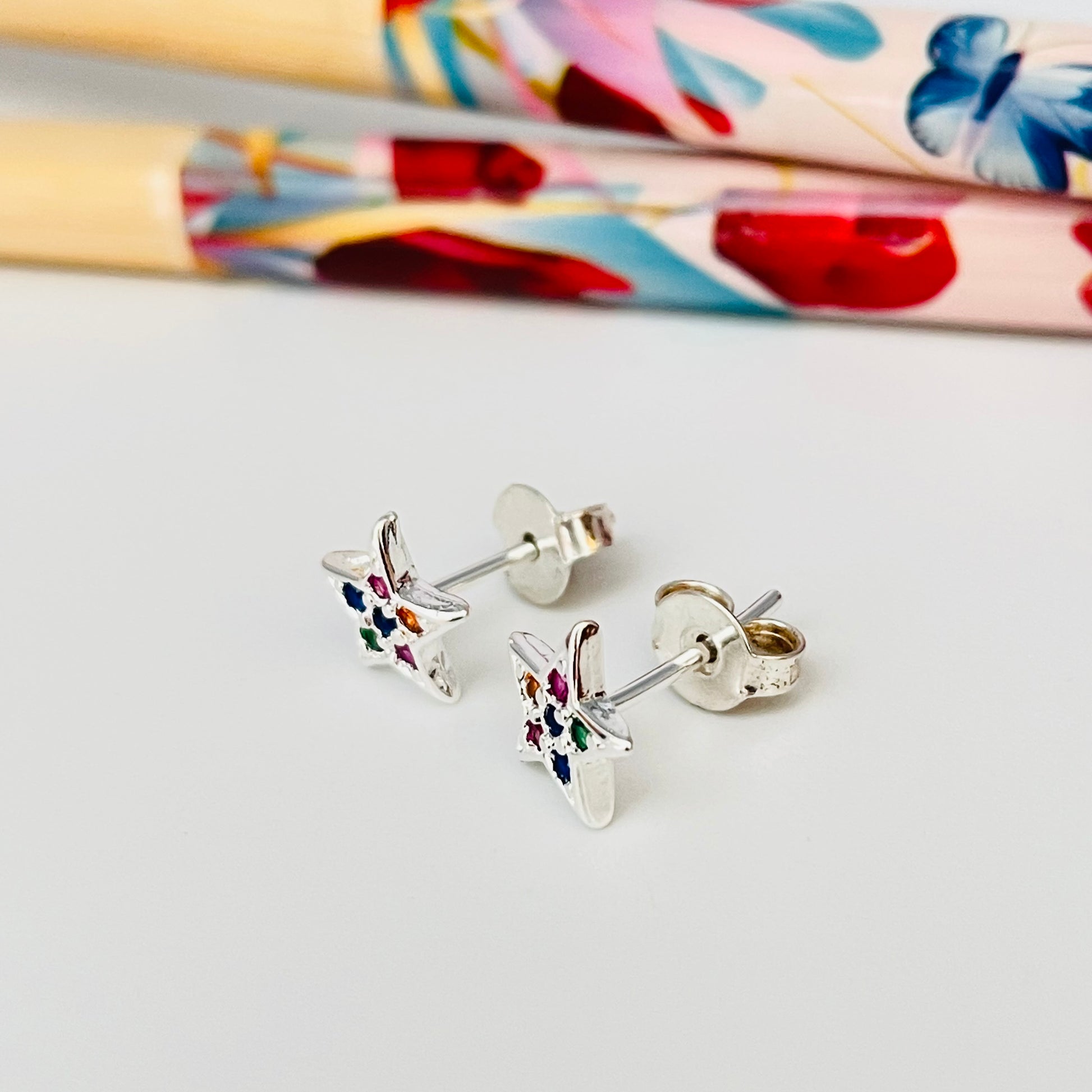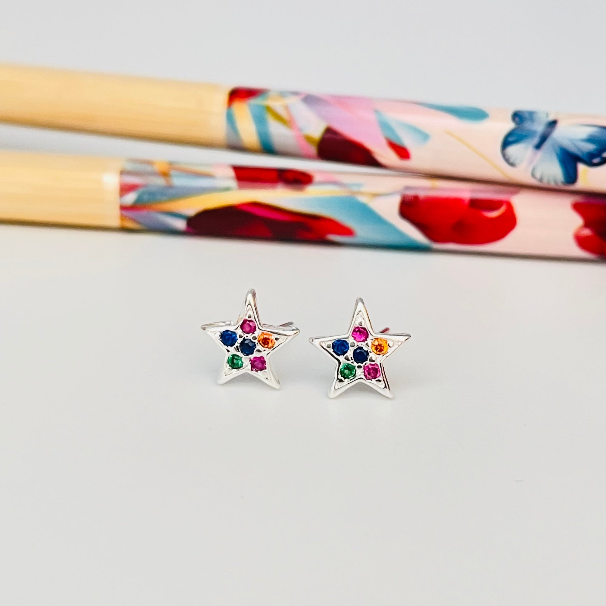 XP216 Aro Estrella con circones multicolor 8 mm Aro Baño Plata