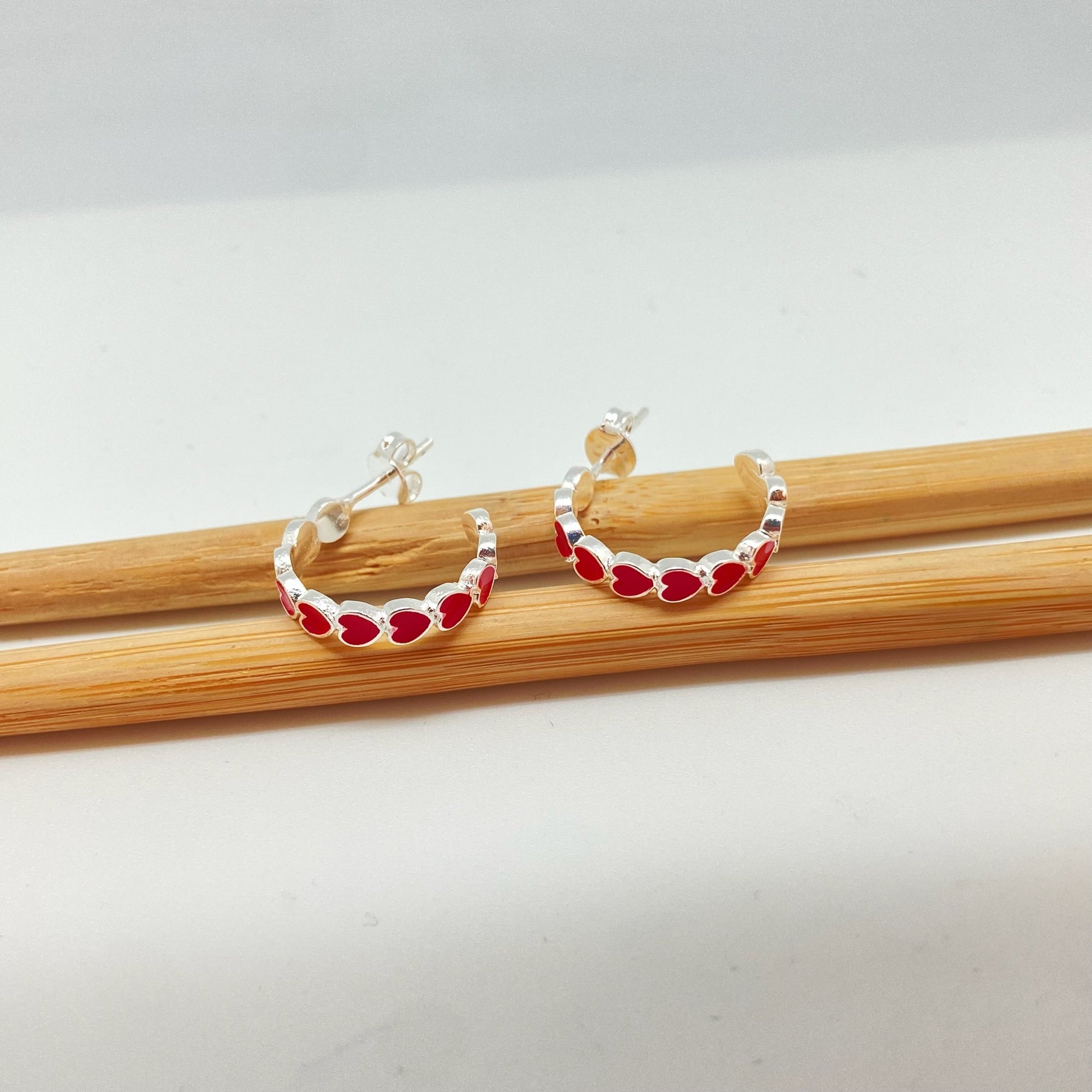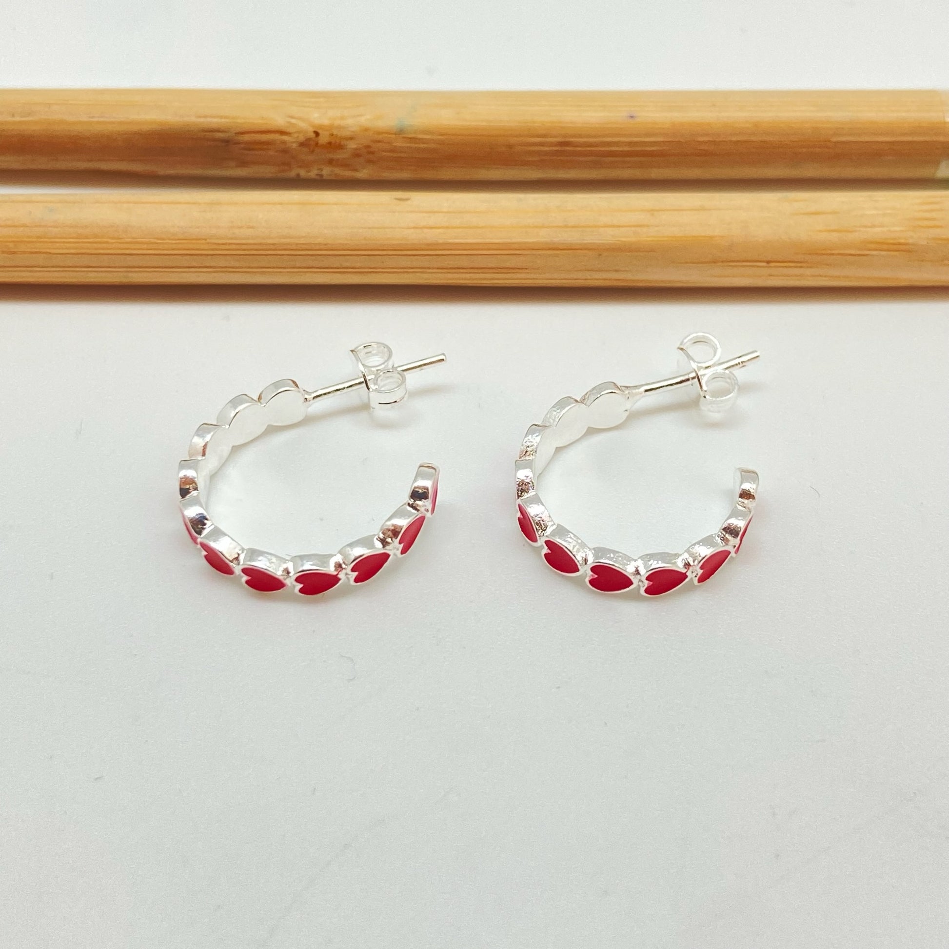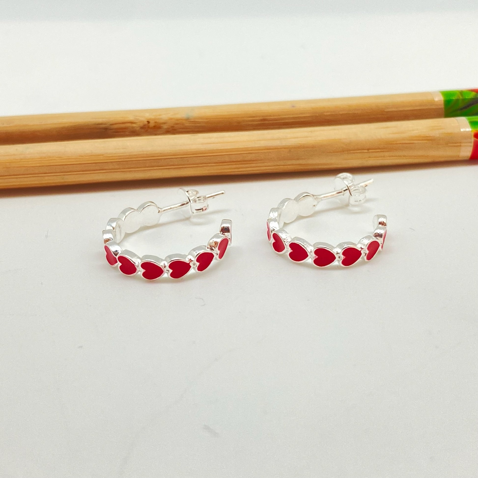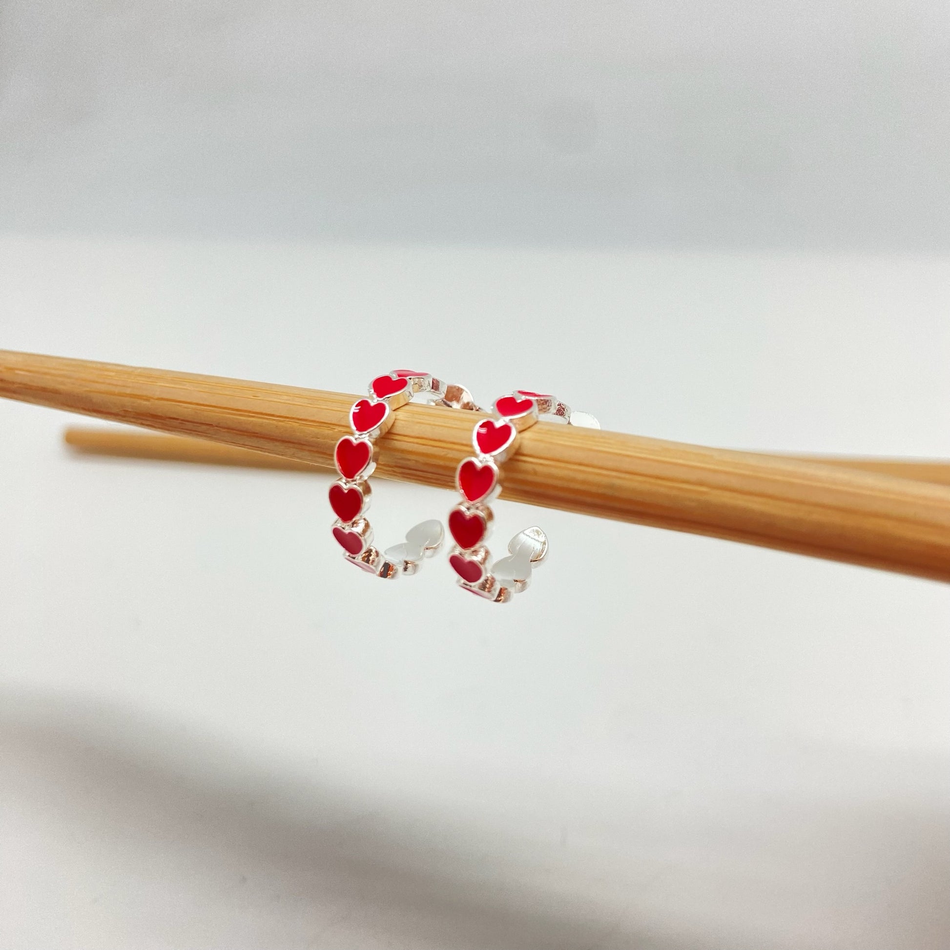 XP301 Aro Argolla Corazones con resina color Dia. 15 mm ancho 4 mm Aro Baño Plata